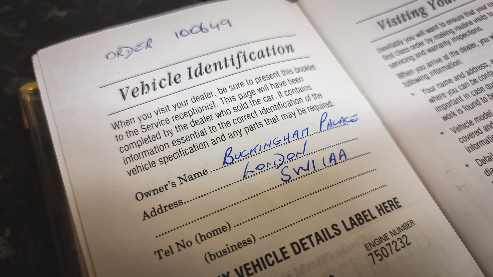 Supplied new in 1993 by Thomas Day Motors of Fleet, the business was one of an approved list of car suppliers for the Royal Estate. First registered as L464 BPE, the Rover Sterling’s owner was officially listed as “Buckingham Palace.”