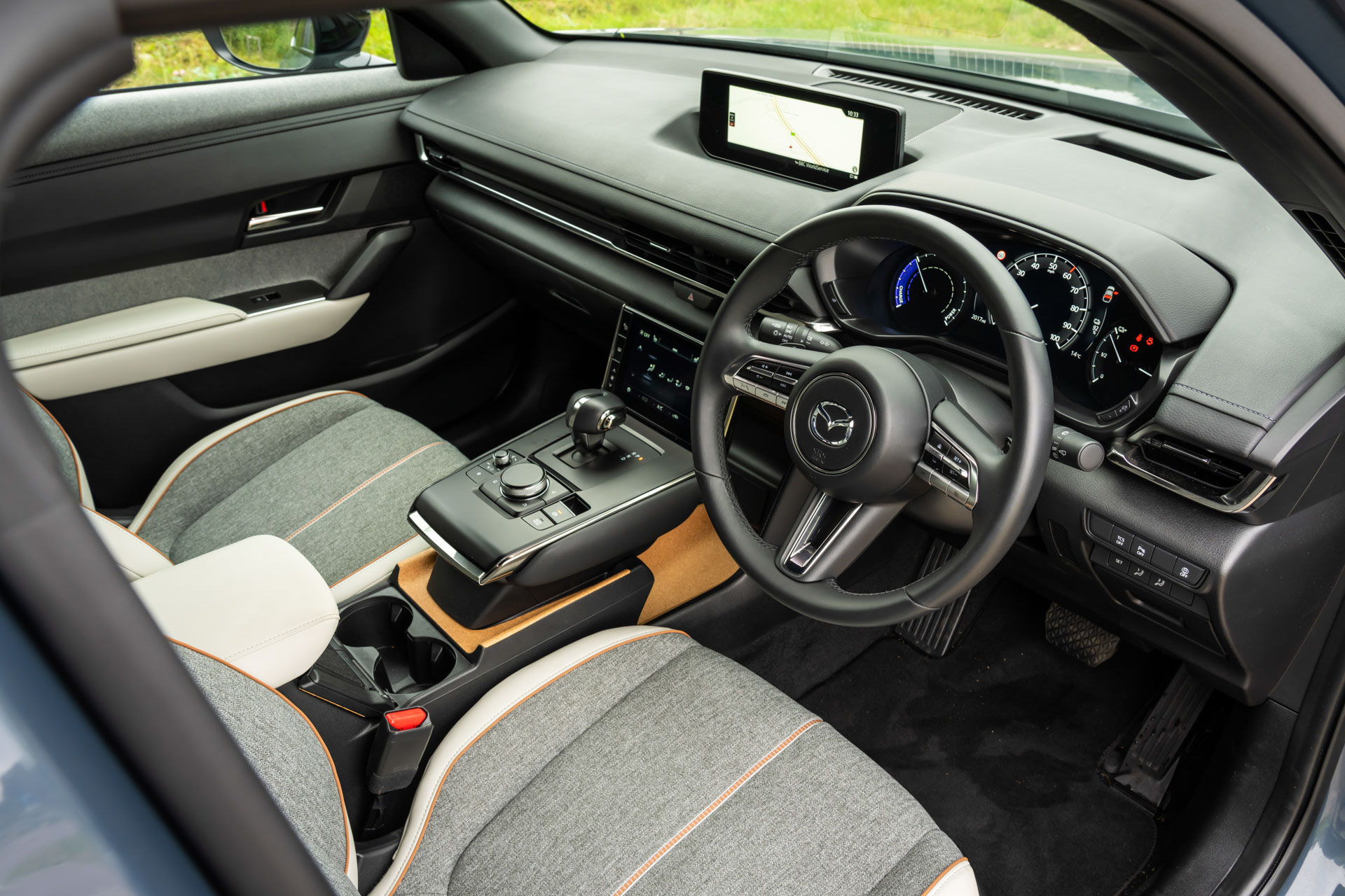 Middle of the pack, but predicted to be out in front when it comes to sales, the MX-30 Exclusive-Line builds on the Prime-Line’s list of kit with power seats, keyless entry and the option of three-tone color scheme instead of the base car’s single-tone design. Top of the tree is the Makato, which brings artificial leather, a wiper de-icer, sunroof, heater steering wheel and Bose surround sound tunes.