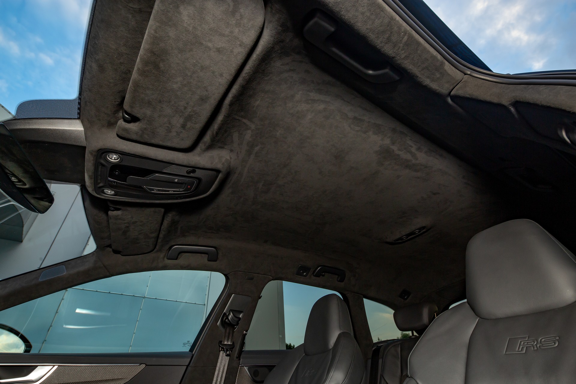 According to the company, the owner of this RS6 Avant wanted an Alcantara headliner from the moment he purchased the car. However, at the time, the RS6 could only be purchased with an Alcantara headliner if the owner also ordered the €6,000 ($6,313) Bang & Olufsen premium sound system and that’s not something this owner was willing to do.