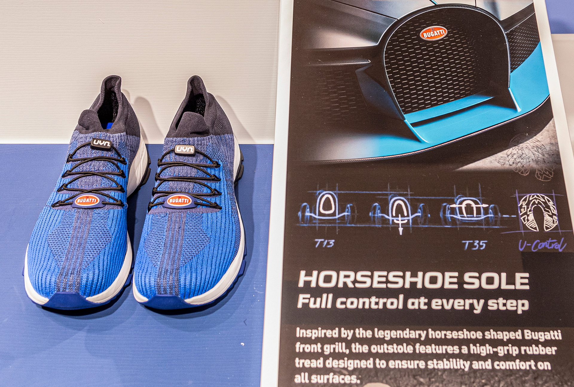 For instance, the shoes in the collection have a “Horseshoe” sole. It features a shock-absorbing midsole and high-grip rubber tread all in a familiar U-shape and it is inspired by Bugatti‘s grille. UYN claims that it actually gives its new shoe superior traction on all terrain.