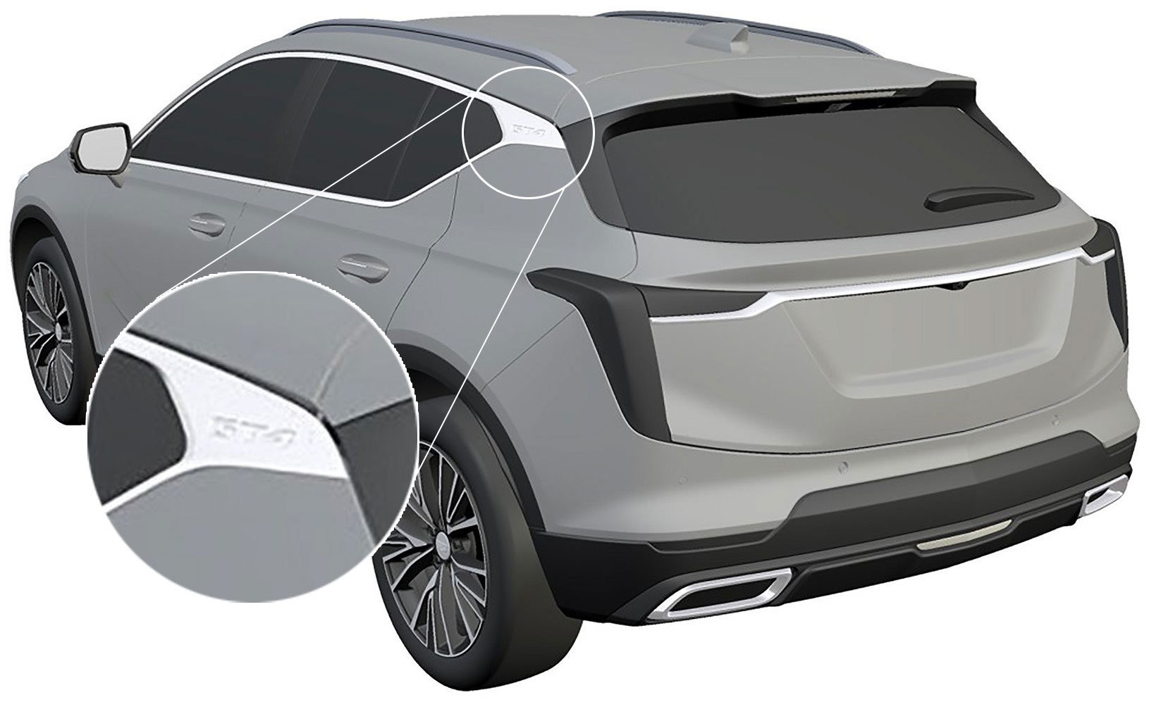 Elsewhere, there’s a bulging hood and plastic body cladding. We can also see streamlined bodywork and a dynamic greenhouse that flows into a chrome GT4 badge on the rear pillar. While the latter accent recalls the one used on the Toyota Corolla Cross, the rear end is unmistakably Cadillac as we can see the brand’s trademark taillights. They’re joined by a rear spoiler and a flowing chrome bar.