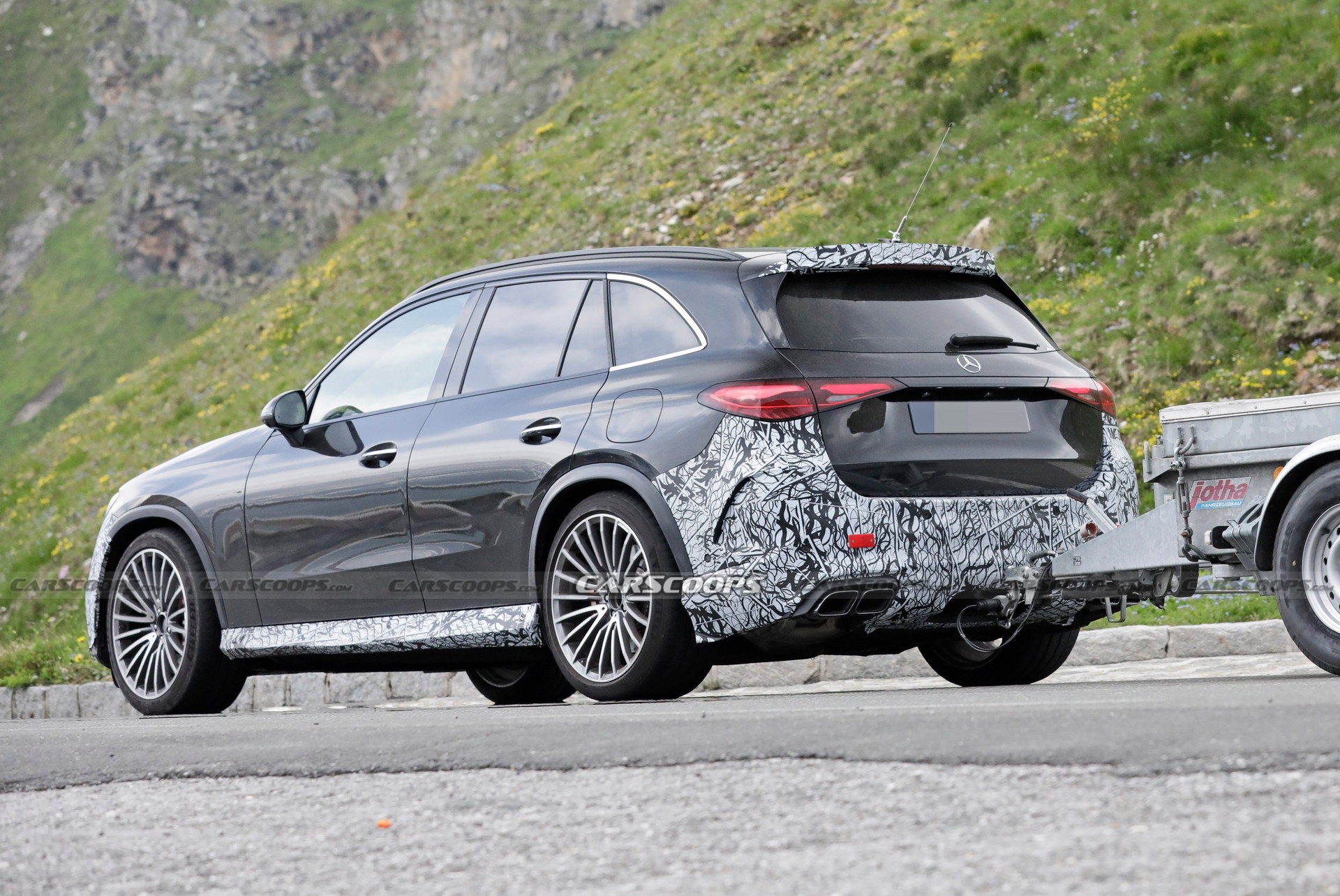 It is only natural for prototypes of the upcoming Mercedes-AMG GLC 63 to drop a large portion of their camouflage since the new GLC was revealed. Our spy photographers caught the performance flagship of the GLC lineup in its most revealing form yet, showing the go-faster bits to go along with its extremely powerful plug-in hybrid powertrain.