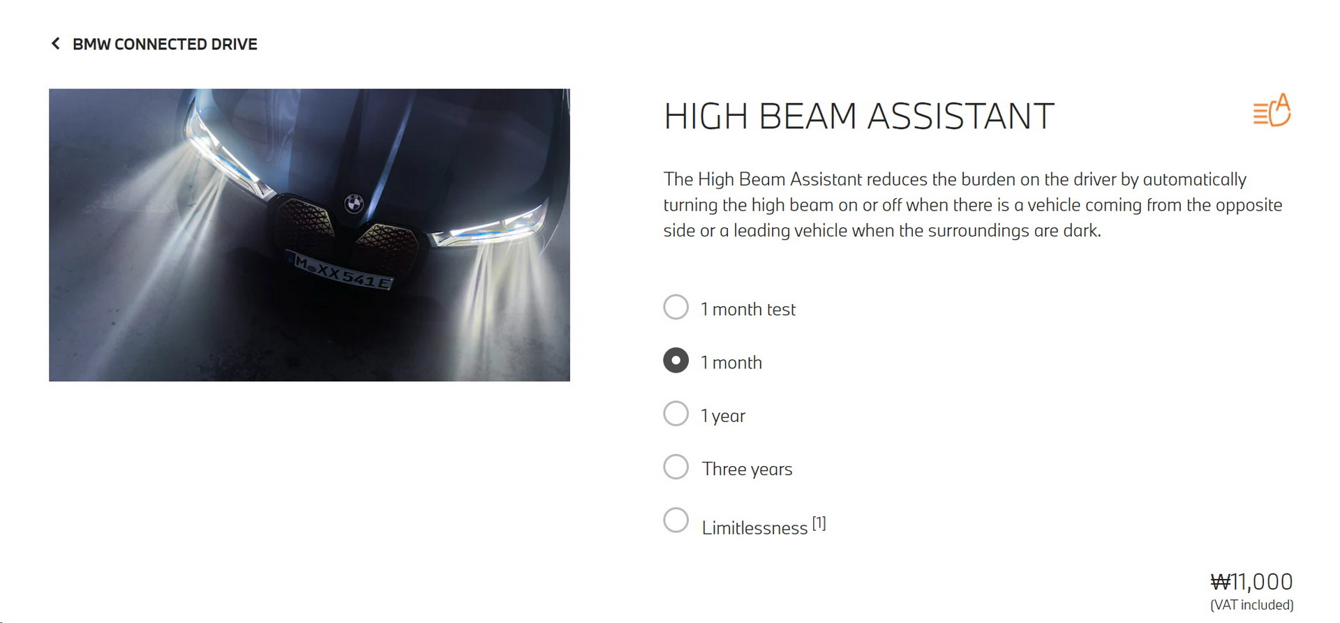 The automaker‘s ConnectedDrive site also offers other monthly services. A heated steering wheel can also be had for the equivalent of around $10 per month, while High Beam Assistant (which automatically changes between high and low beam as needed) costs $8.38 (₩11,000) per month or $182.78 (₩240,000) for a limitless term.