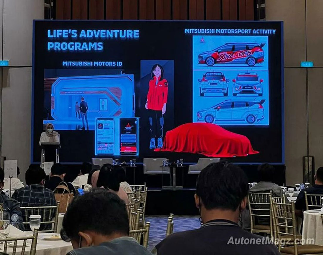 While recently attending the Gaikindo Indonesia International Auto Show, members of the press where shown a slideshow presentation previewing a host of new and upcoming models for the Indonesian market. This image sent to us by Autonetmagz shows Mitsubishi’s Xpander APR and featured directly below it is a mystery model in a red cover that looks suspiciously like a sedan.