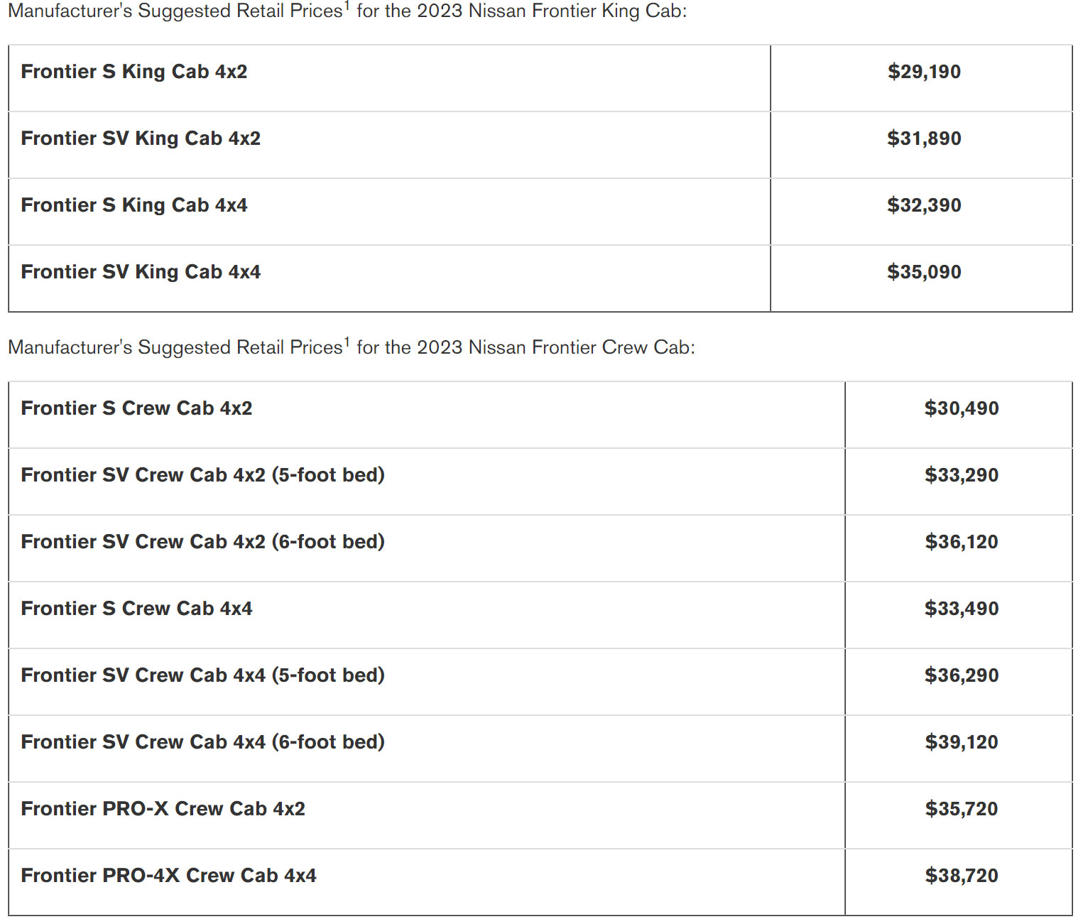 The 2023 Nissan Frontier has been priced from $29,190, making it a touch more expensive than the 2022 model.