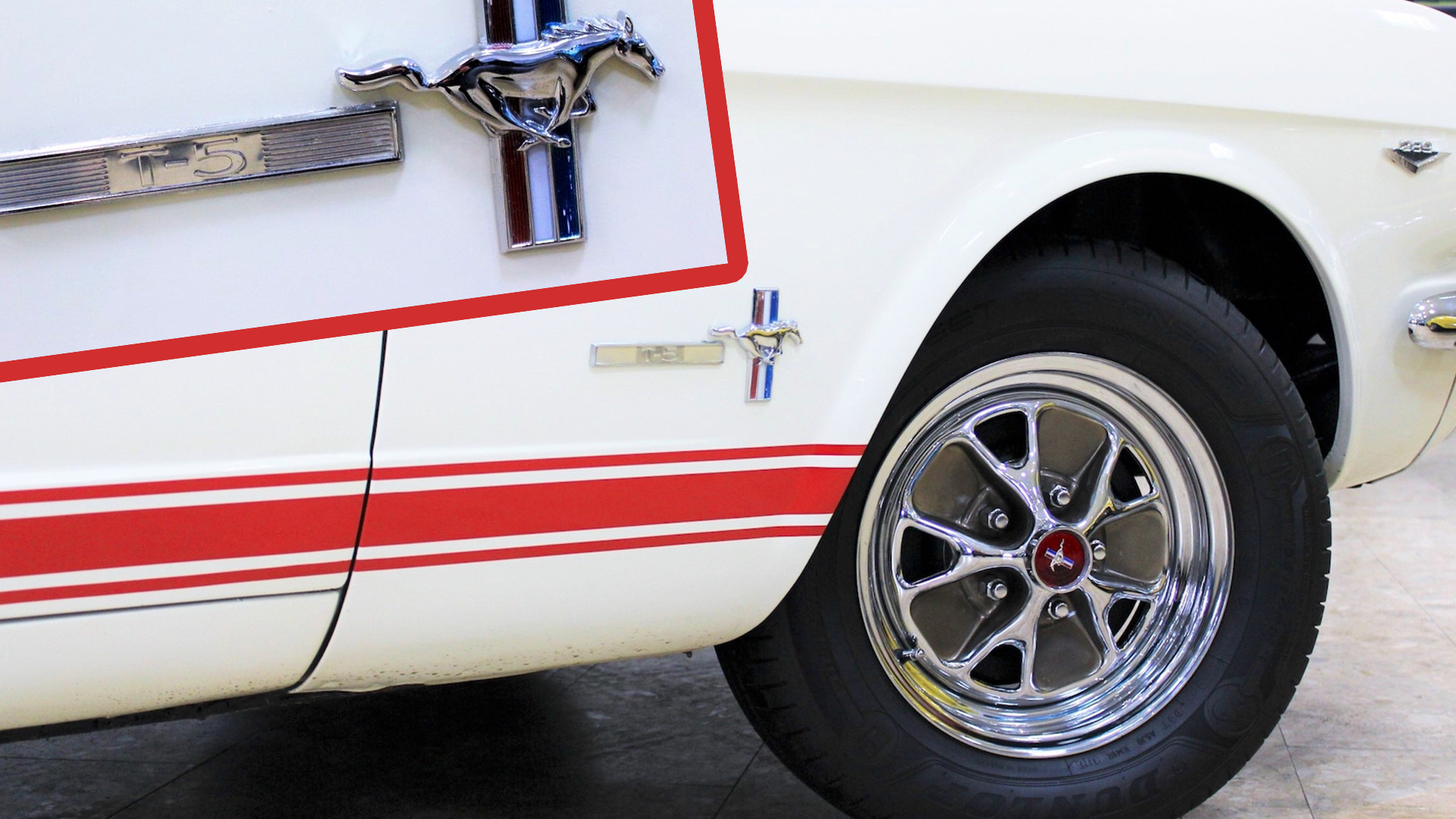 The 1965-66 T5 cars were built in Dearborn and were given some mechanical upgrades to make them suitable for Europe, including Euro-spec lights and turn signals, and apparently the shock tower brace more usually found on the Shelby GT350 to improve handling. But getting rid of all the usual Mustang references was an equally involving job. U.S.-spec models had the word ‘Mustang’ emblazoned on the steering wheel center, the gas cap, the front fender, and some had it on the hubcaps too.