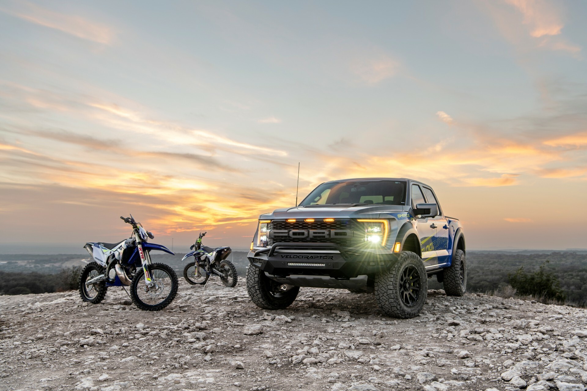 For his brand’s part of the deal, John Hennessey said that “Our customers drive our trucks hard, both on- and off-road, participating in a variety of motorsports activities. The collaboration with Sherco aligns our high-performance VelociRaptor 600 with equally as capable enduro bikes.”