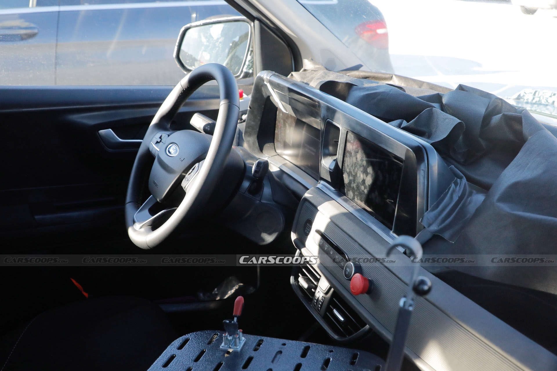 Another key option will be an all-electric powertrain that will share its electric motor and battery pack with the upcoming Puma EV. That won’t be available until 2024 though, meaning buyers who want to get in early when the Couriers hit showrooms in Europe later this year will have to make do with 1.0-liter Ecoboost mild-hybrid petrol engines generating around 123 hp (125 PS). A manual transmission will be offered on base versions, but our interior spy shots show this van is fitted with the only alternative, a seven-speed Powershift dual-clutch gearbox.