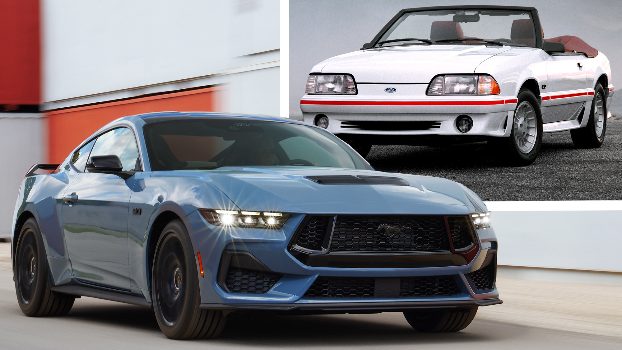The all-new 2024 Mustang also serves up different grilles for the GT and base models, though in this case they’re both massive compared with the ones fitted to 1987-93 cars.