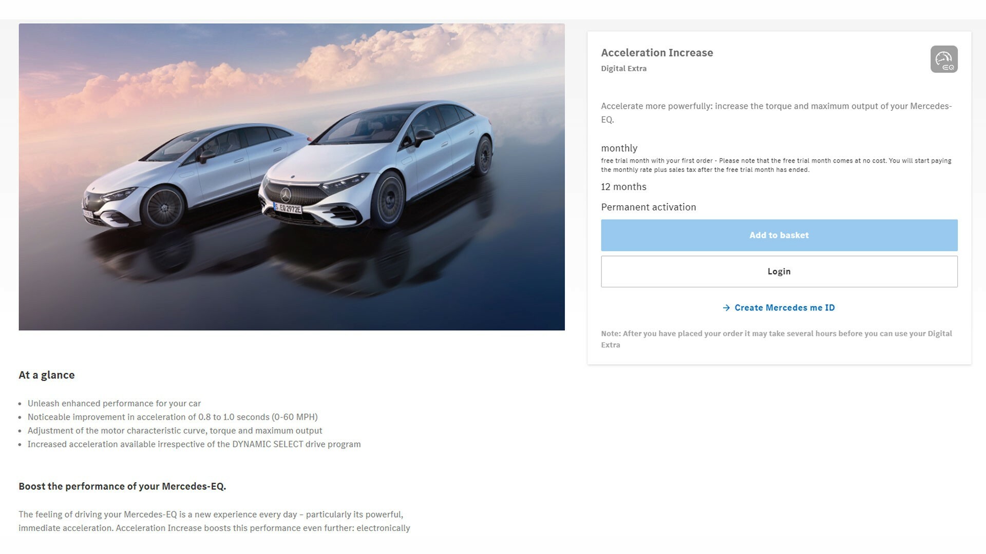 If you happen to own an EQS 450 4MATIC or EQS 450 4MATIC SUV, the performance tax is even higher as it costs more than $1 per horsepower. In particular, the upgrade is $90 per month, $900 per year, or $2,950 for the “lifetime of [the] vehicle.”