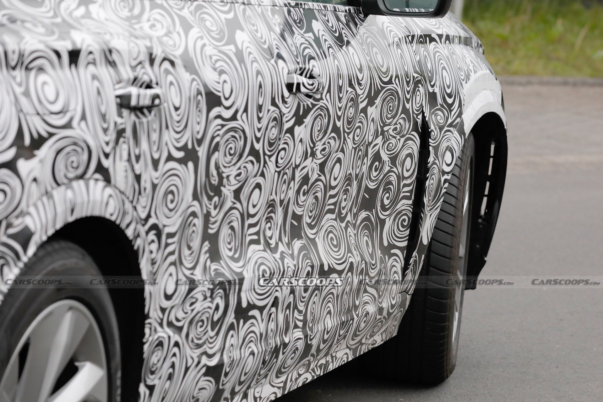 This time the lower grille is inverted, creating a smiley face, but what’s probably even more significant is that the grille mesh has a sporty hexagon-style pattern, which suggests it’s a performance version. That idea is backed up by new front fenders that seem to be flared to create a vent (whether real or fake) where the fender meets the front door.