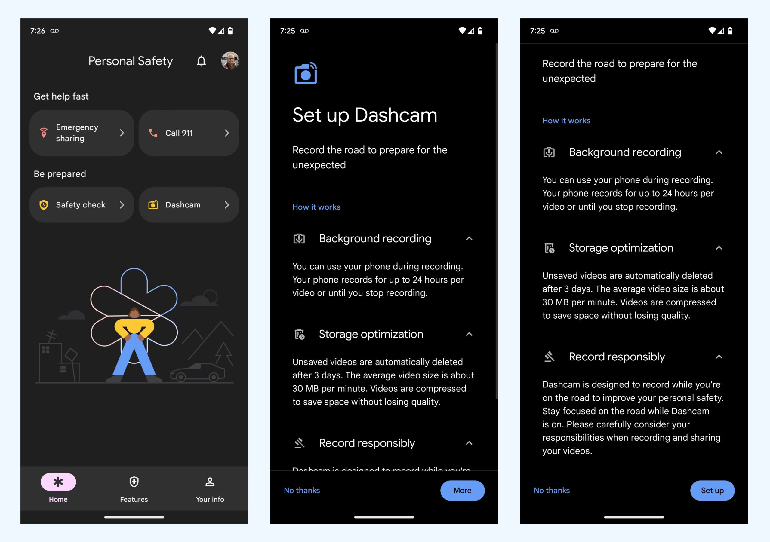 In any case, the Personal Safety App is available on Google’s Pixel and a handful of other Android devices. It has features like “Emergency Sharing,” “Safety Check,” and “Car Crash Detection,” with which a new dashcam function would fit right in.