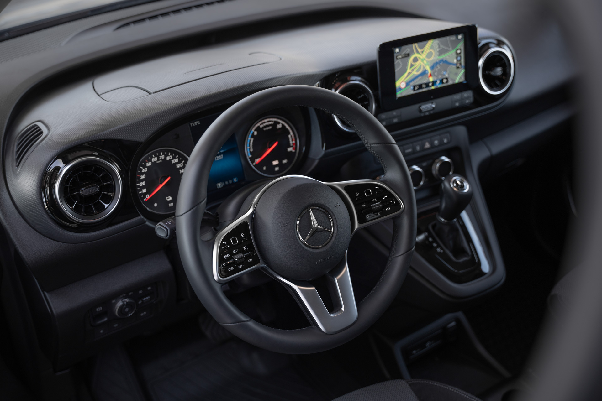 The other major decision for eCitan buyers to wrestle with is whether to go for Base or Pro grades. Pro adds features like extra color coding on the exterior trim, LED interior lighting, air conditioning, a stereo, electric windows, and a height-adjustable driver’s seat, which all seems like pretty basic kit to us, so you’d have to be a bit of a masochist to settle for the entry-level van. And even if you do upgrade to the Pro you’ll still have to pay extra for the 7-inch MBUX touchscreen infotainment system.