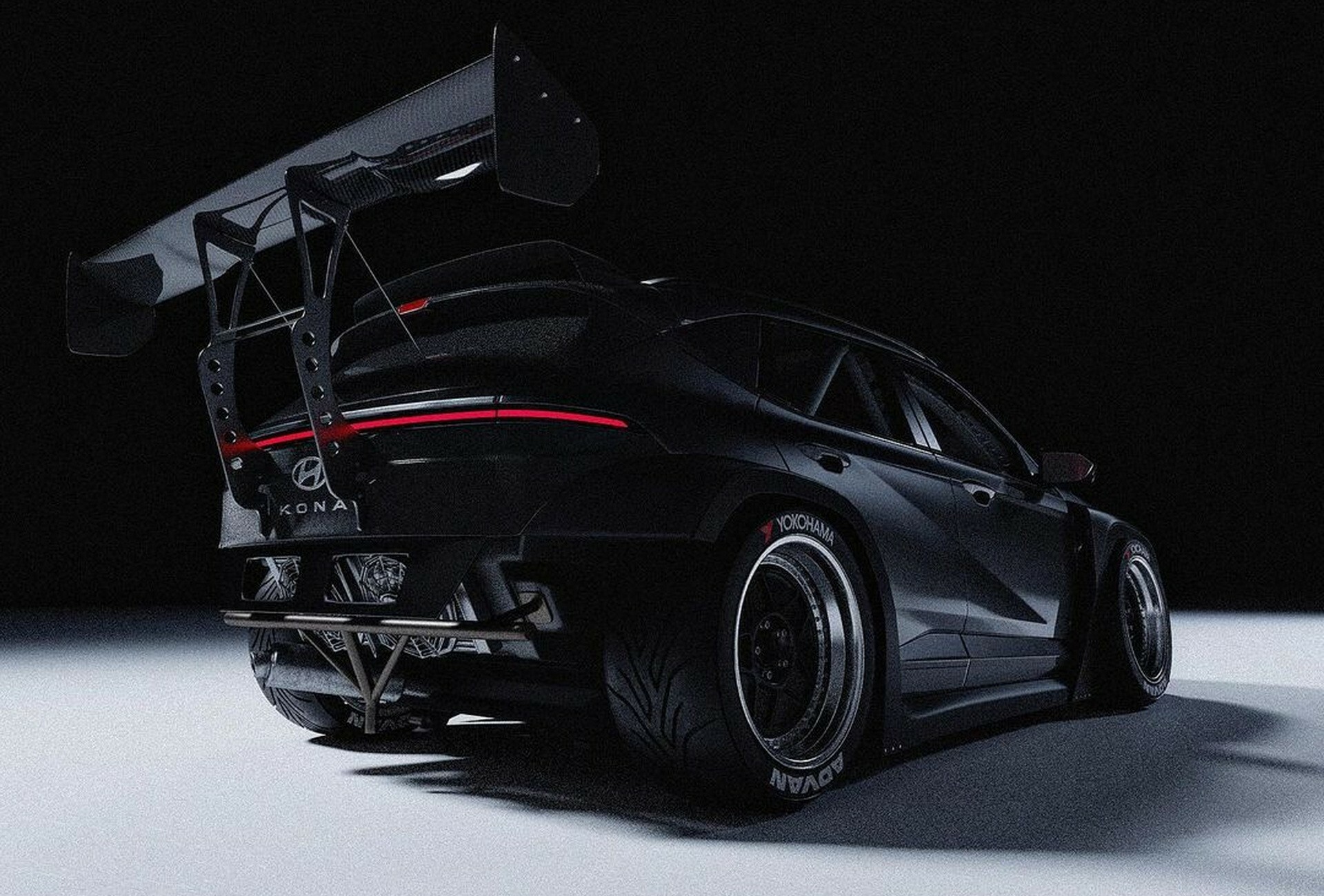 The production model offers a range of pwoertrain options, including gasoline, hybrid, and fully electric versions. Currently, the most potent model is the Hyundai Kona N-Line fitted with a 1.6-liter T-GDi that delivers 190 hp (142 kW / 193 PS) in stock form. Obviously, this would be too weak for the fictional racecar which needs a hefty amount of power to justify the add-ons. What we know for certain is that the digital creator envisioned it with a combustion powertrain as hinted at by the exhaust, and the turbocharger’s air filter sticking out of the bonnet.
