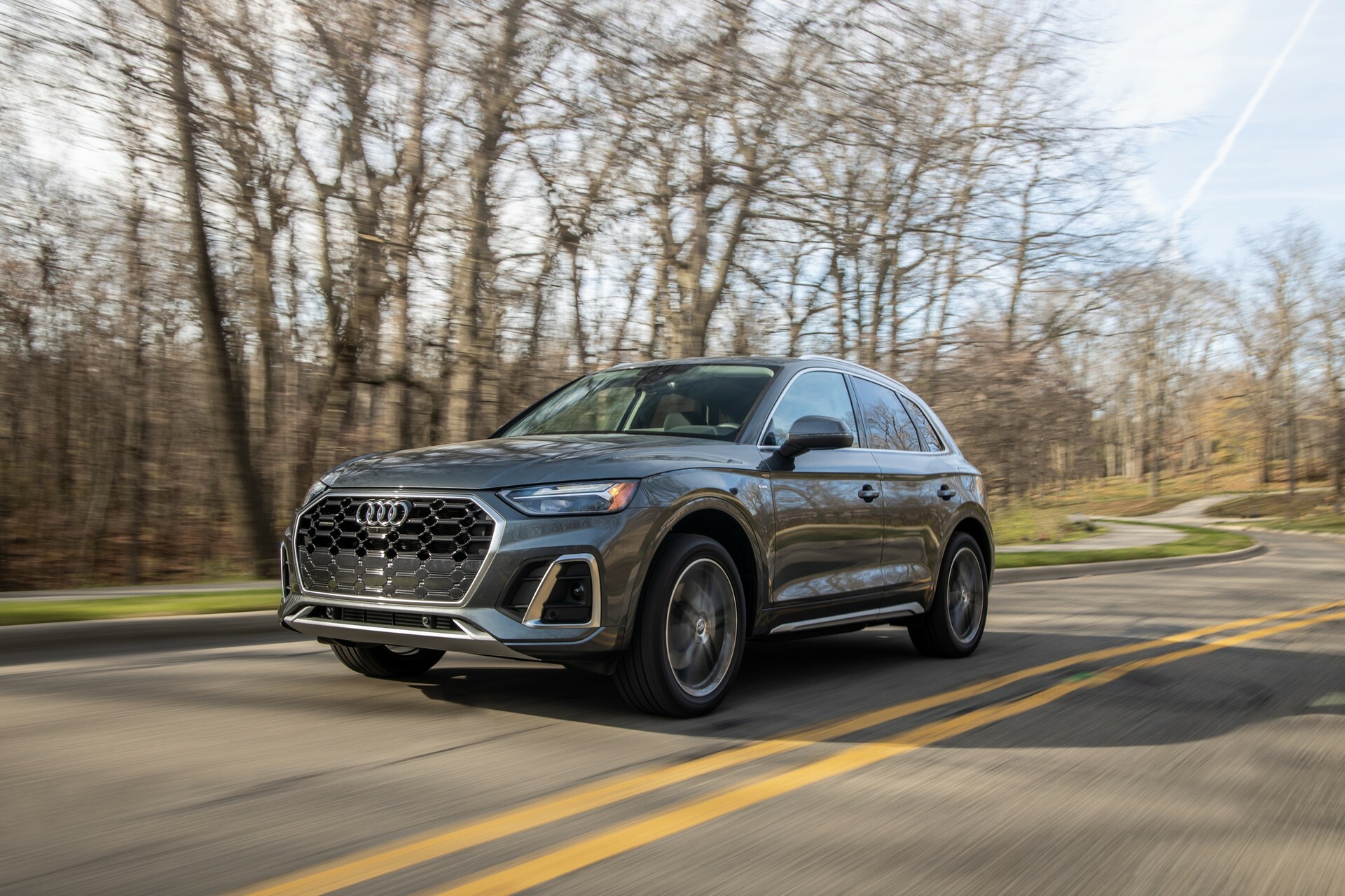 The $44,600 Q5 gains active lane assist, a heated steering wheel with hands on detection, and remote engine start via the Audi app. The entry-level Q5 40 offers a new Black optic package, while the Q5 45 now comes standard with front sport seats and Gray-Brown Birch natural wood trim.