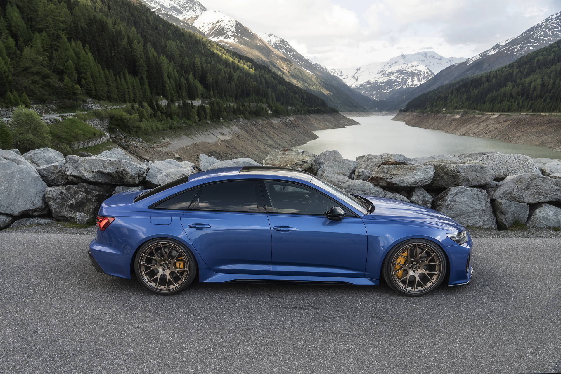 The car rides on a set of 22-inch BBS CH72 alloy wheels with a gold finish contrasting the custom-made Cristal blue shade of the exterior. For the interior, Ado X Performance sourced most of the ingredients from an RS6 Plus, adding bespoke forged carbon fiber accents alongside the factory-spec Alcantara and leather upholstery.
