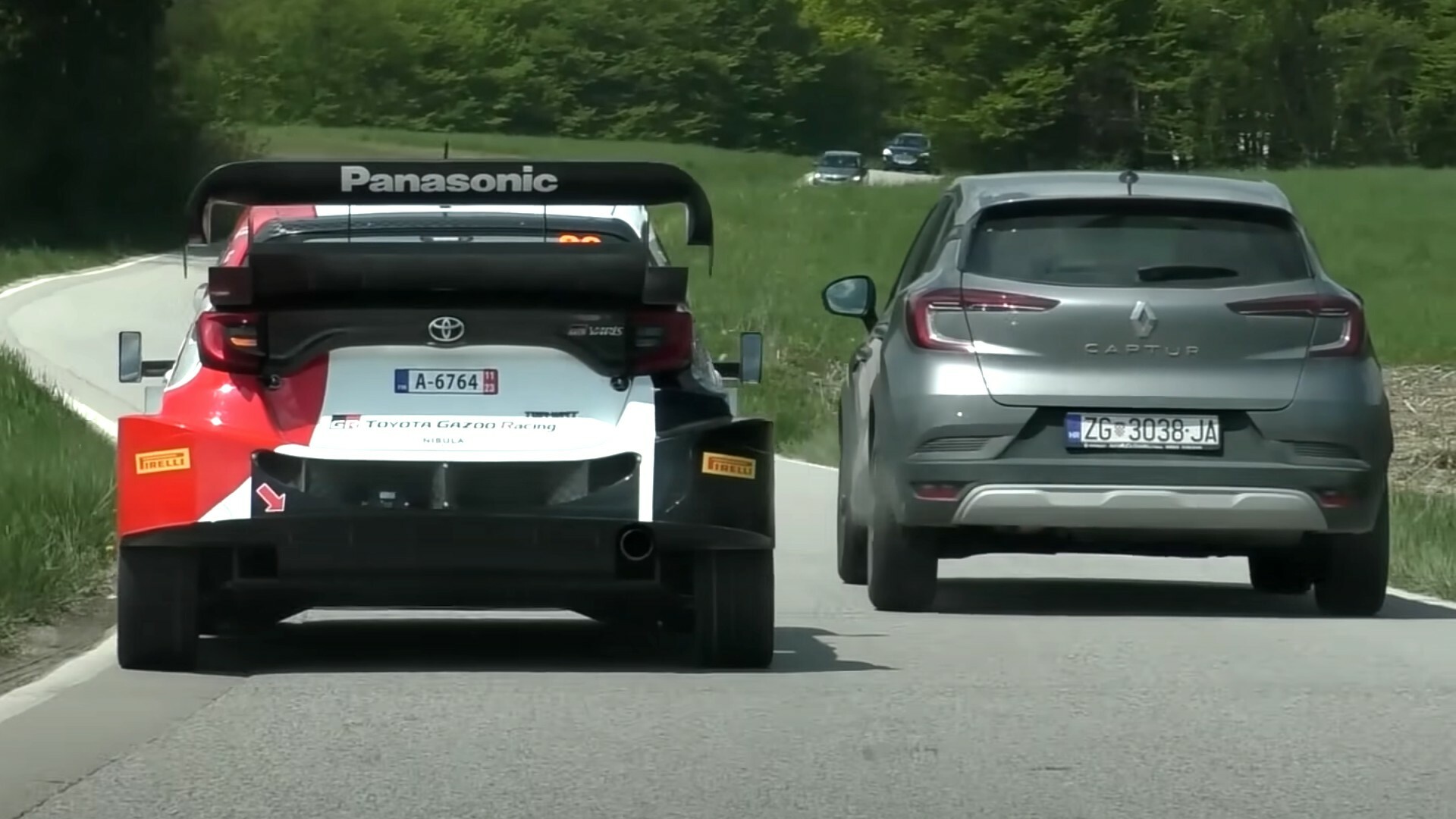 The most dangerous part of the video is likely the maneuver of the Hyundai i20 N Rally1 that is overtaking a Citroen Berlingo van right at the last minute before taking the exit on the highway. At another point we can see a Toyota GR Yaris Rally1 Hybrid casually overtaking a Renault Captur, showing the notable difference in width between the wide-bodied rally cars and a mainstream B-SUV. Other appearances in the video include the Ford Puma Rally1 Hybrid, as well as rally cars of different categories like several examples of the Skoda Fabia and a rare Alpine A110 Rally.