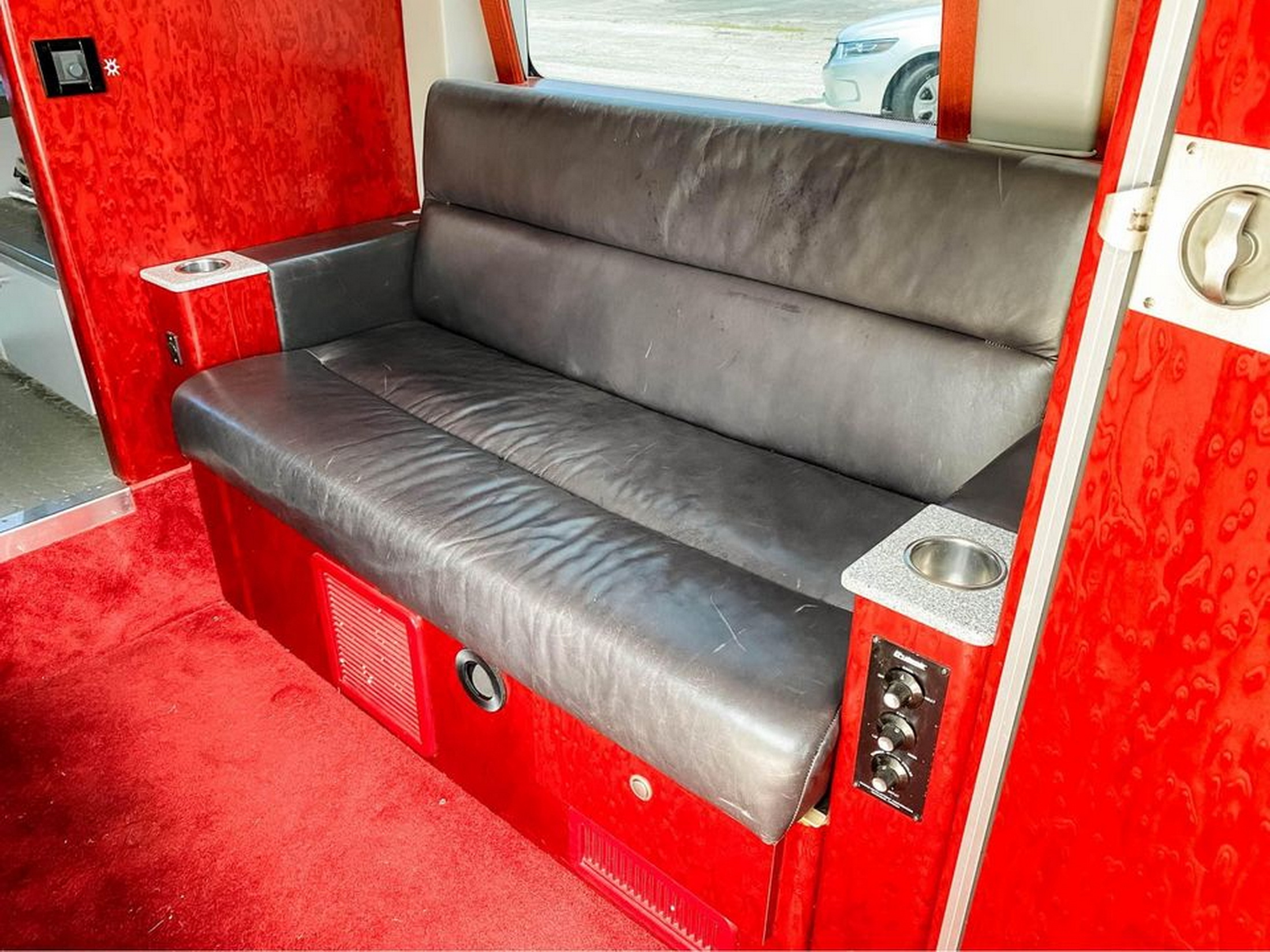Further adding to the luxury feel, each motorhome was made to order, and every customer got to decide how to organize their vehicle’s interior. Whereas this one has a bench seat that folds into a bed, red carpeting, a toilet, a sink, a mini-fridge, and a TV, others had big lounge seats, while others still were made to look like city buses.