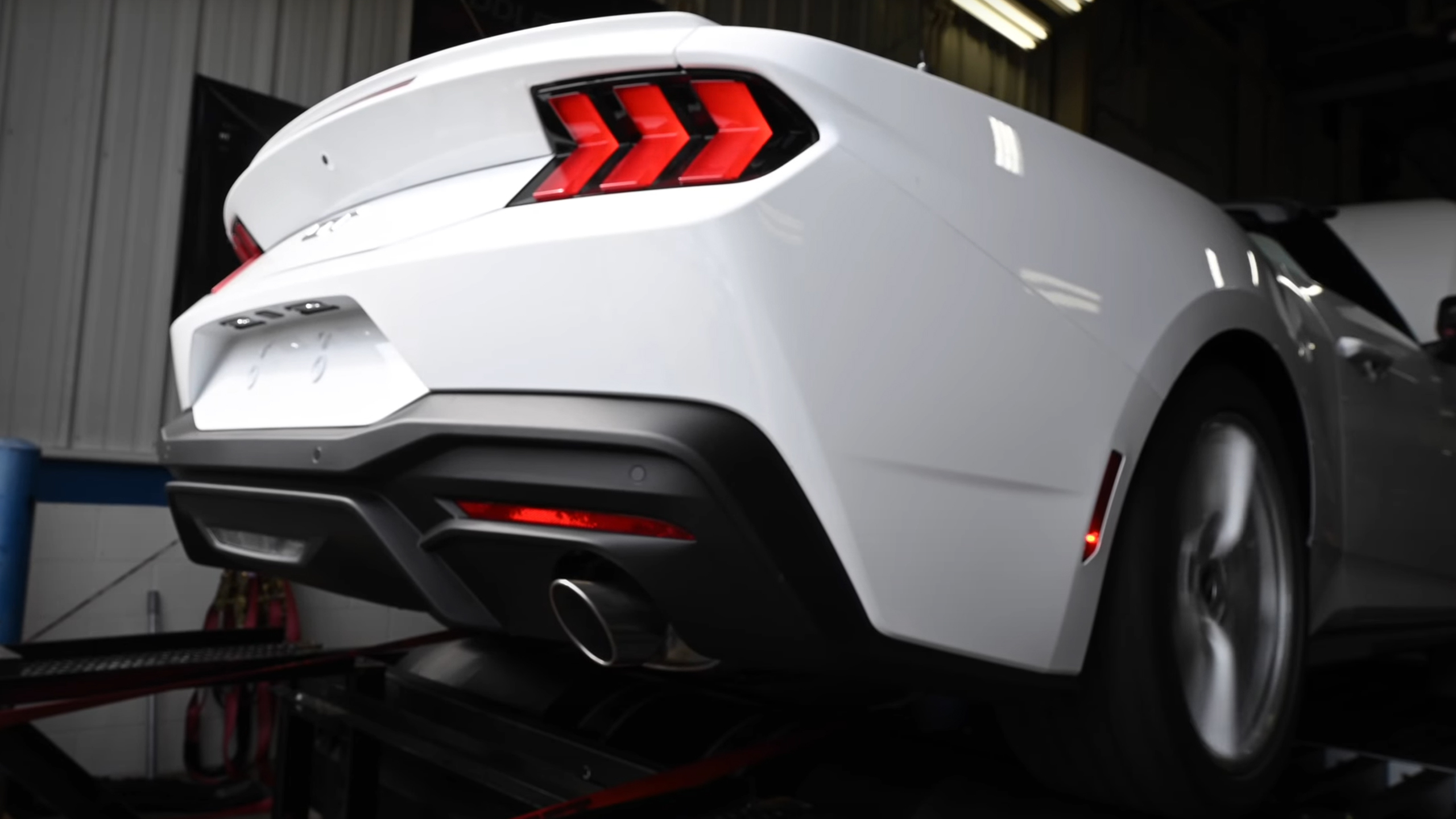 Testing the Mustang with the available 10-speed automatic isn’t ideal for determining just how much power it has. The best gear to test it in would be seventh as it has a 1:1 ratio but it’s impossible to hit the redline in seventh without slamming into the electronic speed limiter. This forced the shop to test the pony car in fifth gear with its 1.520:1 ratio, impacting the horsepower and torque figures.