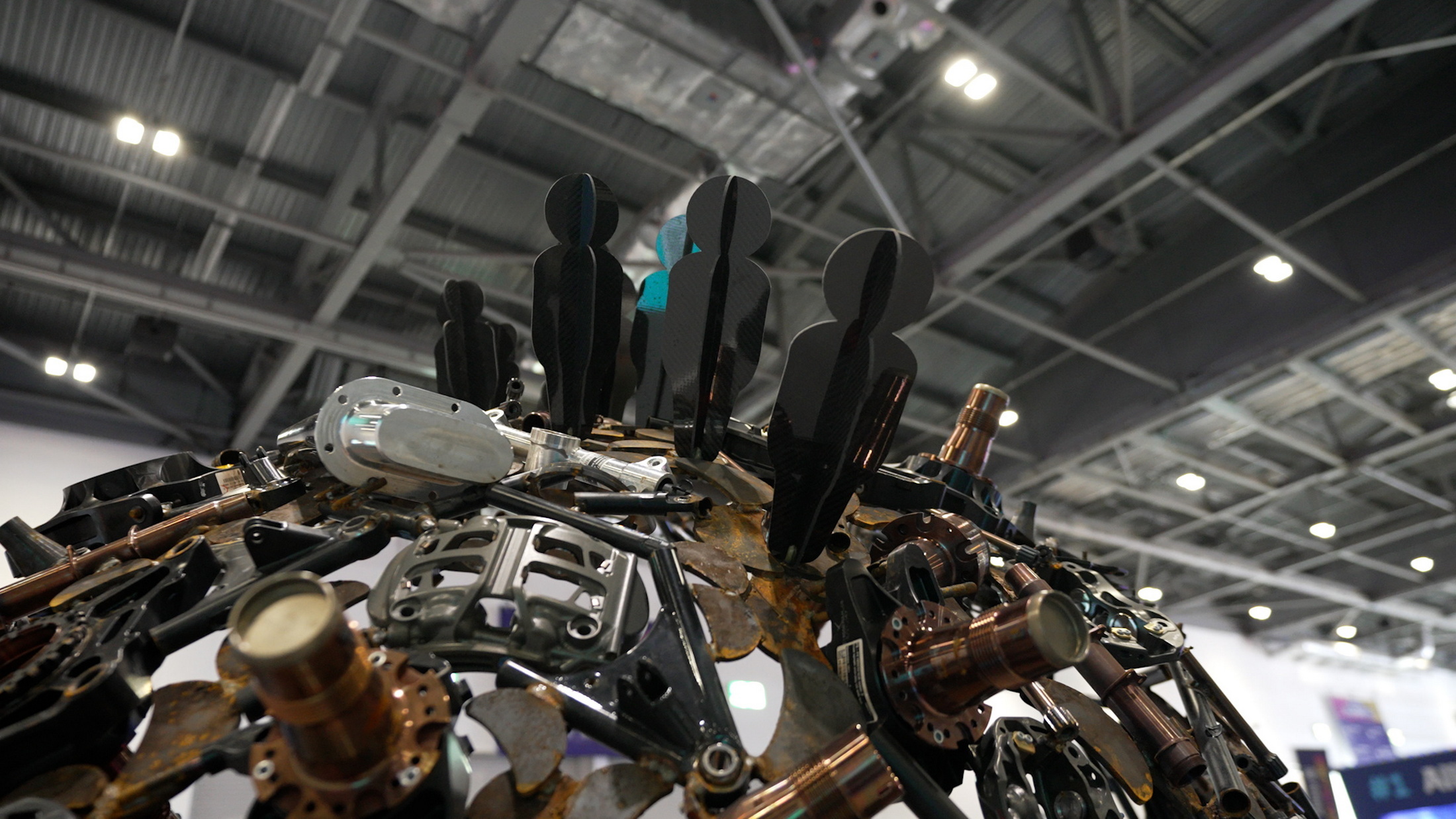 The art piece was sculpted by Britain’s Charles Elliot, using parts donated by each of the 11 teams that competed in the 2022 season of Formula E. The medium (broken parts) is intended to highlight the importance of a circular manufacturing system.