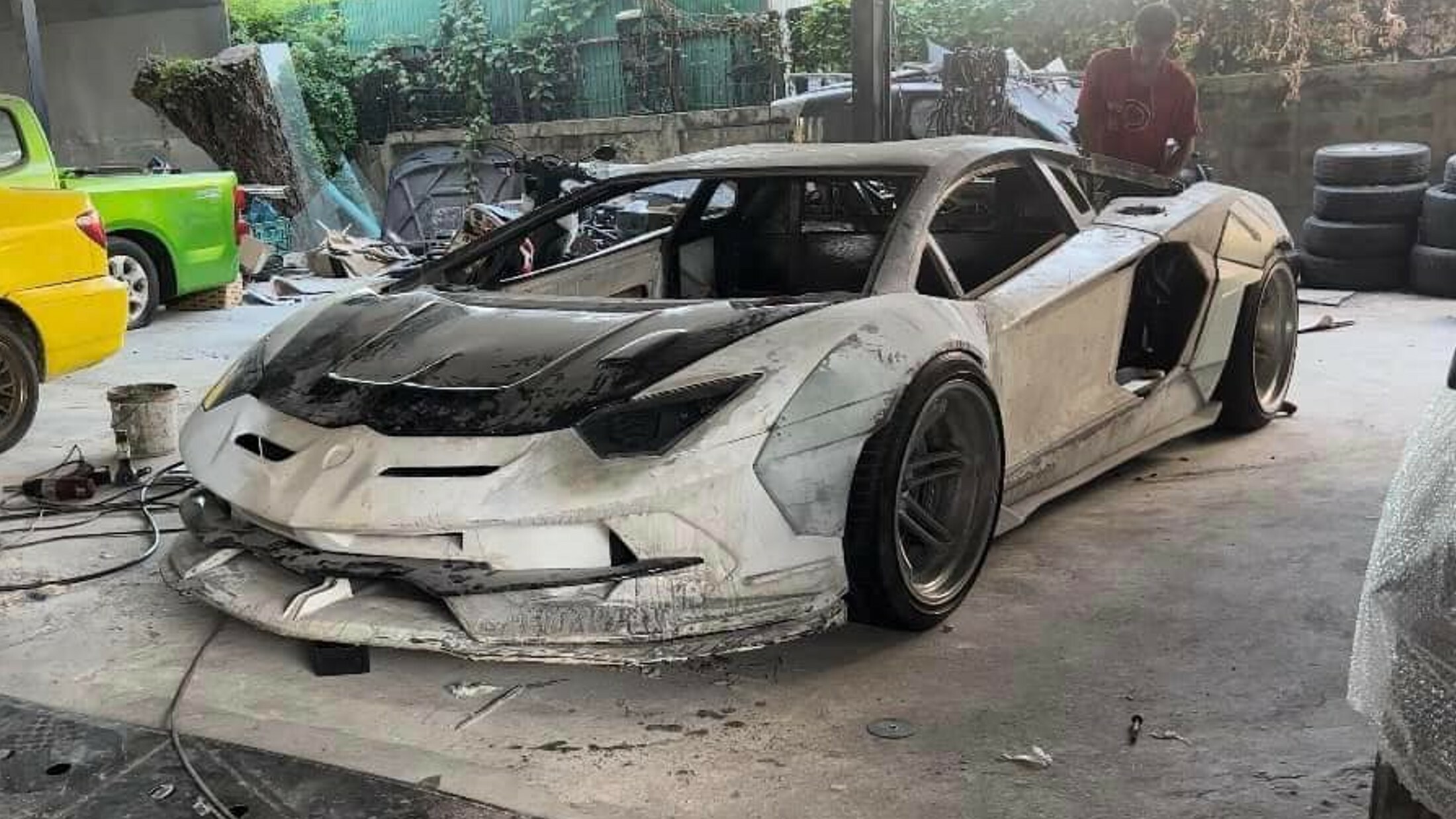 Thai shops are famous for creating convincing supercar replicas and the latest example doesn’t disappoint. The pictured wide-bodied Lamborghini Aventador started life as a four-door Toyota from the late ’80s, borrowing parts from many other models in the process of becoming a functional vehicle.