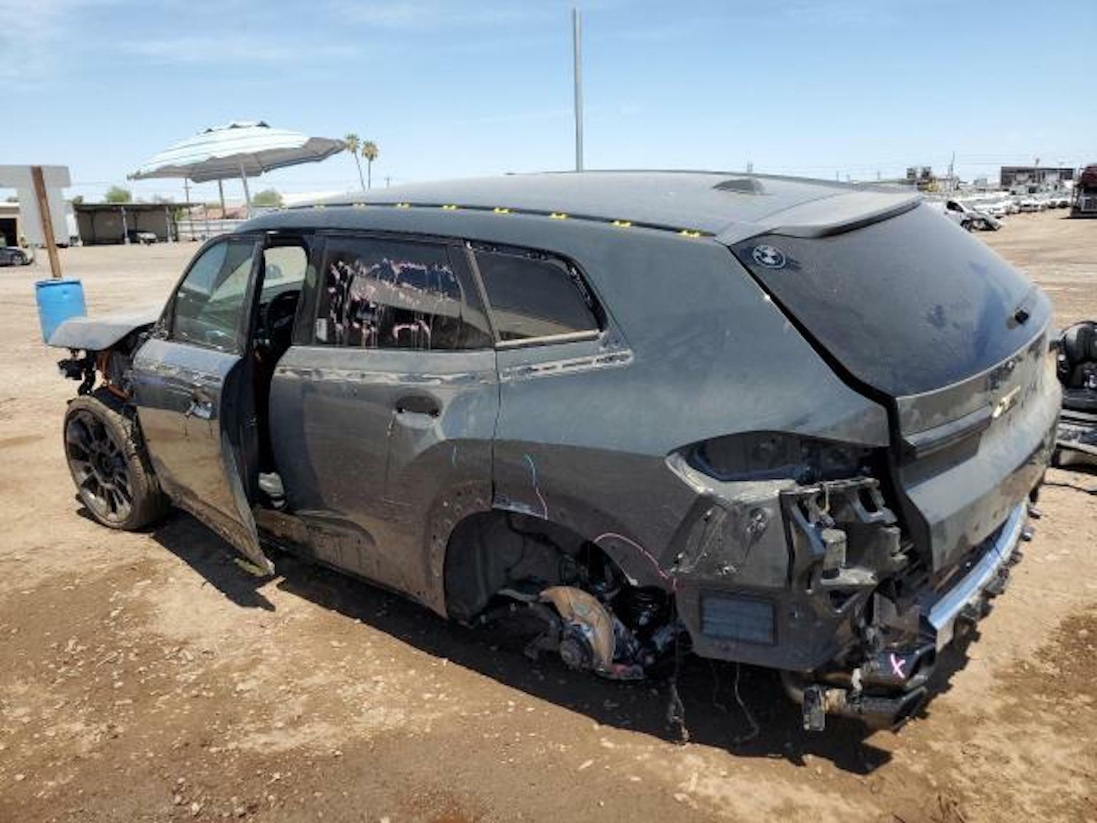 The big questions are whether the driver’s door is open because it can’t be closed, which would might indicate some damage to the body structure, and what kind of carnage lies underneath as a result of that missing 23-inch wheel. Just replacing that rim and the two-deck LED lights in the front would probably be expensive and that’s before you consider the bumpers, trim and paint that’ll be needed to get the BMW back on the road again. But since Copart estimates the pre-accident value as $157,194 (only slightly less than the $159,000 starting price for a zero-options XM), we don’t doubt that there’s enough profit in there to make it worthwhile for someone to resuscitate.