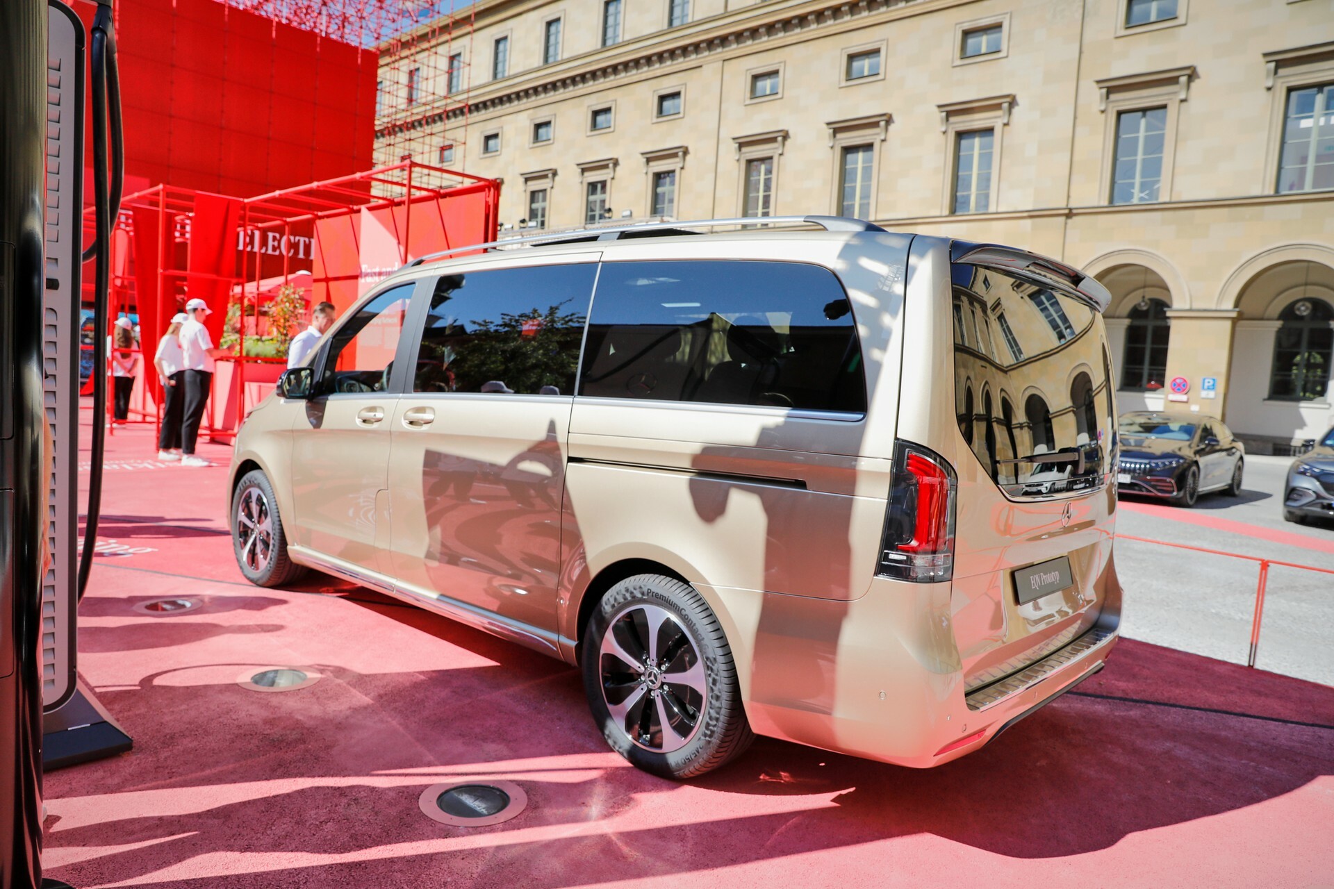 Like the EQV that featured in press photos published by Mercedes-Benz back in July, the example in Munich is painted in an attractive light shade of gold. While it has license plates that read ‘EQV Prototyp’, this is very much the production model that customers will soon be able to get their hands on.