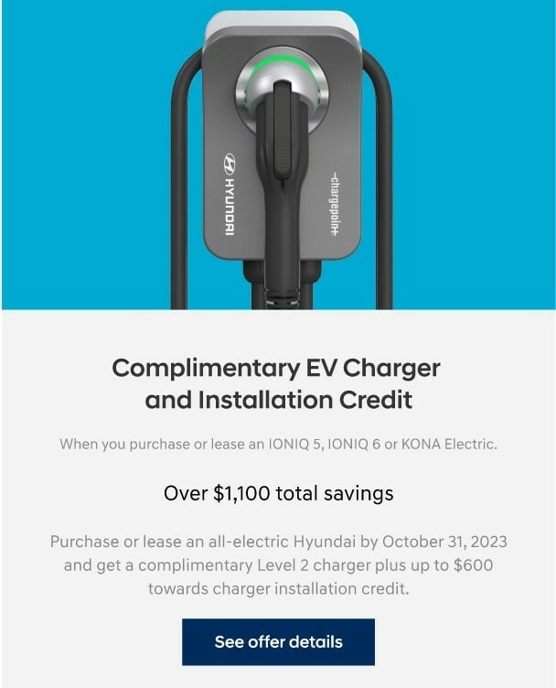 Afterwards, customers will receive a complimentary ChargePoint Home Flex Level 2 charger that is valued at $549. Hyundai is also providing an installation credit of up to $600, which means the offer provides up to $1,149 in savings.