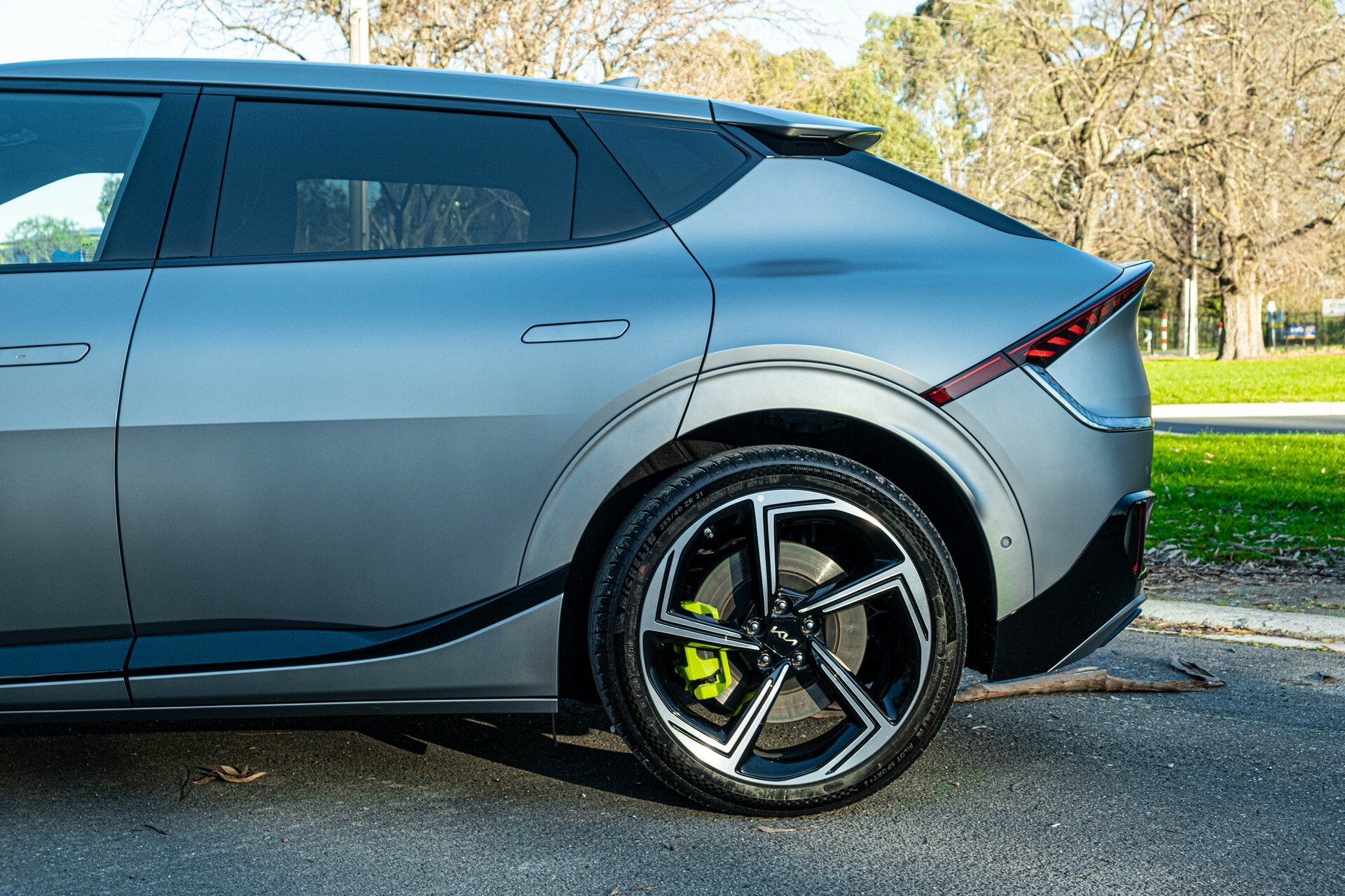 All Kia EV6 GT models sold in Australia come fitted with 21-inch wheels and 255/40 Michelin Pilot Sport 4S tires at all four corners, a welcome upgrade from the Goodyear Eagle F1 of U.S.-spec models. These tires do a superb job of keeping the EV6 GT stuck to the pavement through turns. We were particularly impressed with the immediacy of the car’s turn-in and the confidence it gives you mid-corner. You do have to be careful with the throttle, however.