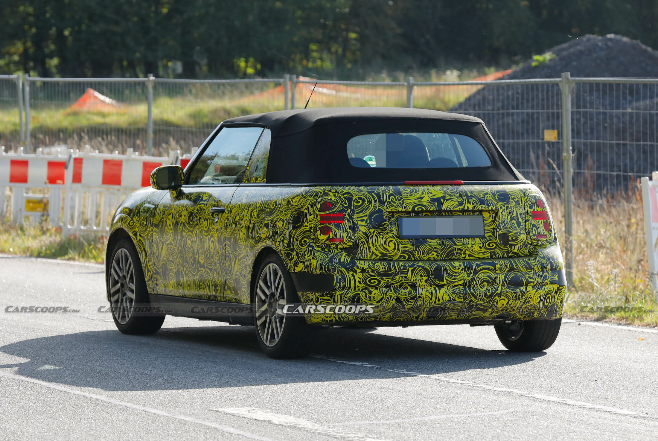 Compared with the sporty convertible prototype we spotted last month this car has much less aggressive bumpers and no visible exhaust system to take away gases from what we think will be a mildly updated version of today’s engine, probably fitted with mild hybrid assistance. The current 1.5-liter three-cylinder produces 134 hp (136 PS), while the 2.0-liter four-cylinder develops 189 hp (192 PS) in S tune and 228 hp (231 PS) as a JCW.