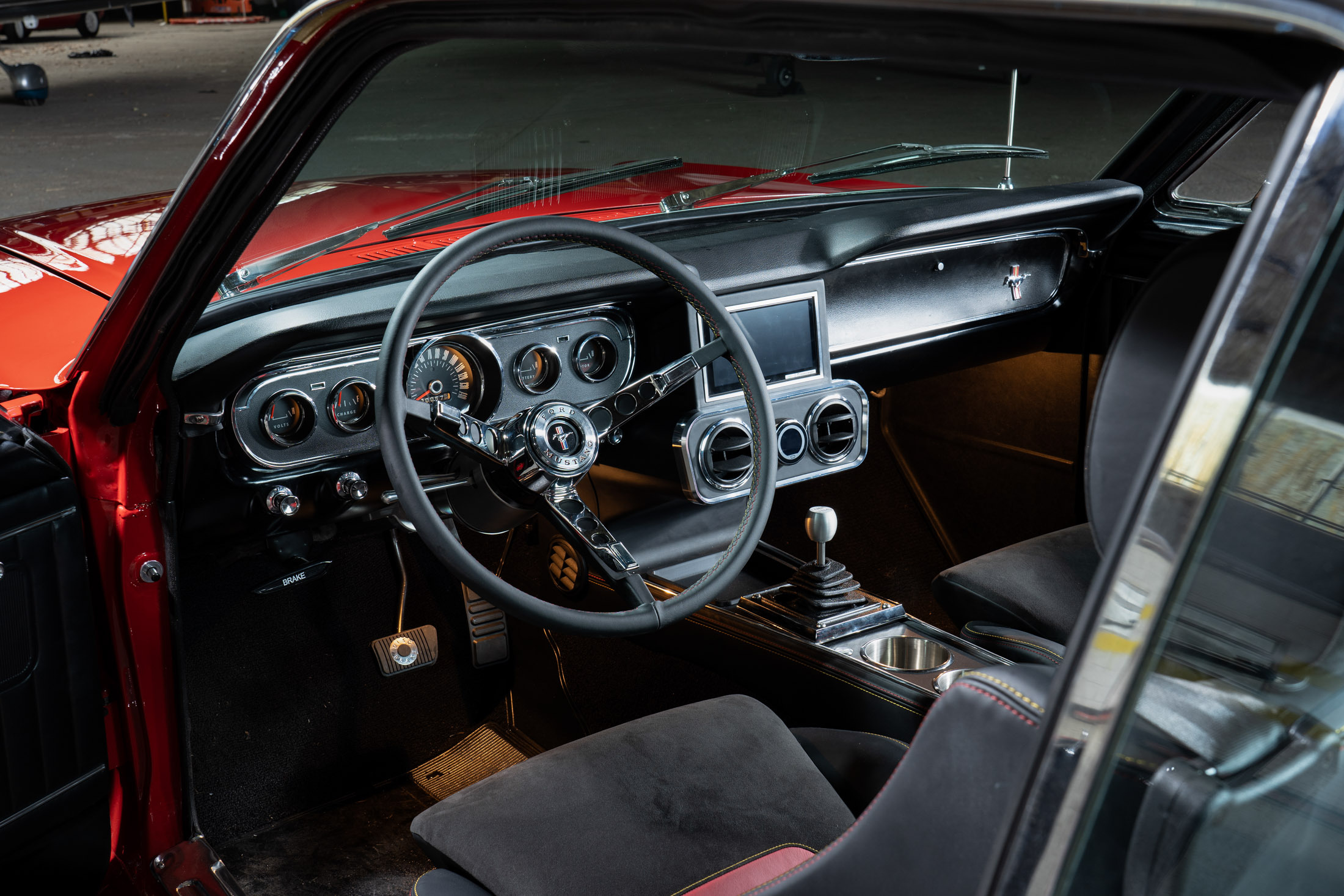 As is the 220-mile (354 km) range, which is probably slightly more than you’d get out of an original V8 Mustang with its 16-gallon (61 liters) tank and 15 mpg economy. The AMR car accepts both AC and DC charges and can be filled from 20 to 80 percent in 40 minutes, plus it has other modern features such as proper climate control, decent seats, Apple CarPlay and Bluetooth connectivity, while still looking like a classic Mustang.