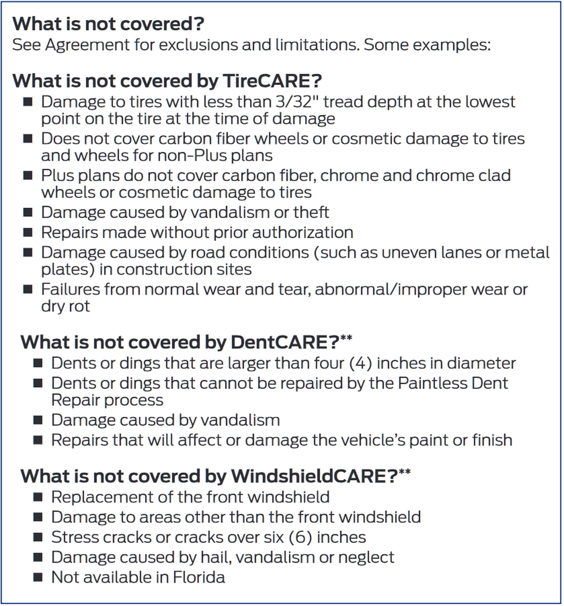 However, Ford’s plans will only cover damage like rock chips and cracks that are less than six inches (15 cm) long. Ford Protect will not pay to replace your windshield completely, which can cost as much as $900, and may require special calibrating from an experienced technician.