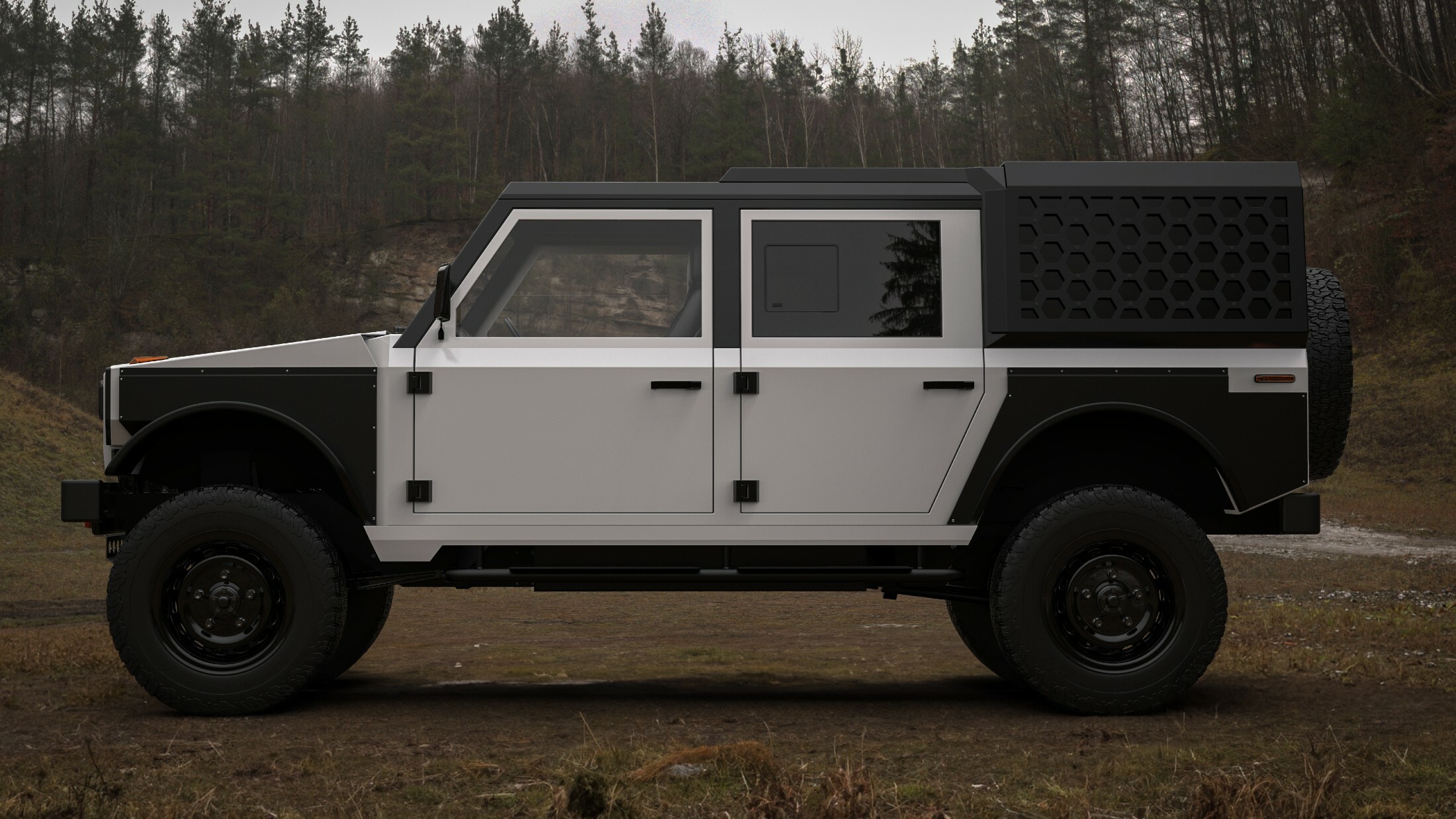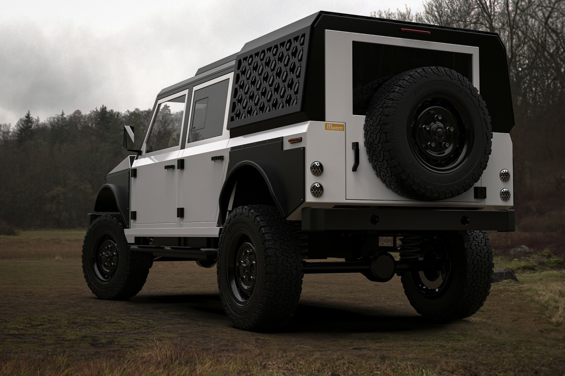 The EV retains its boxy shape but the nose has been extensively redesigned, looking more rugged and less generic than before. The round headlights are now mounted next to a set of intakes which in combination with the opened grille provide better cooling and improve aerodynamics. The bonnet is now inclined, while the front and rear bolt-on fenders are more sculpted than before, leading to rounded wheel arches. Finally, a roof-mounted “exoskeleton” allows easier mounting of all kinds of equipment, something crucial for Munro’s target audience.