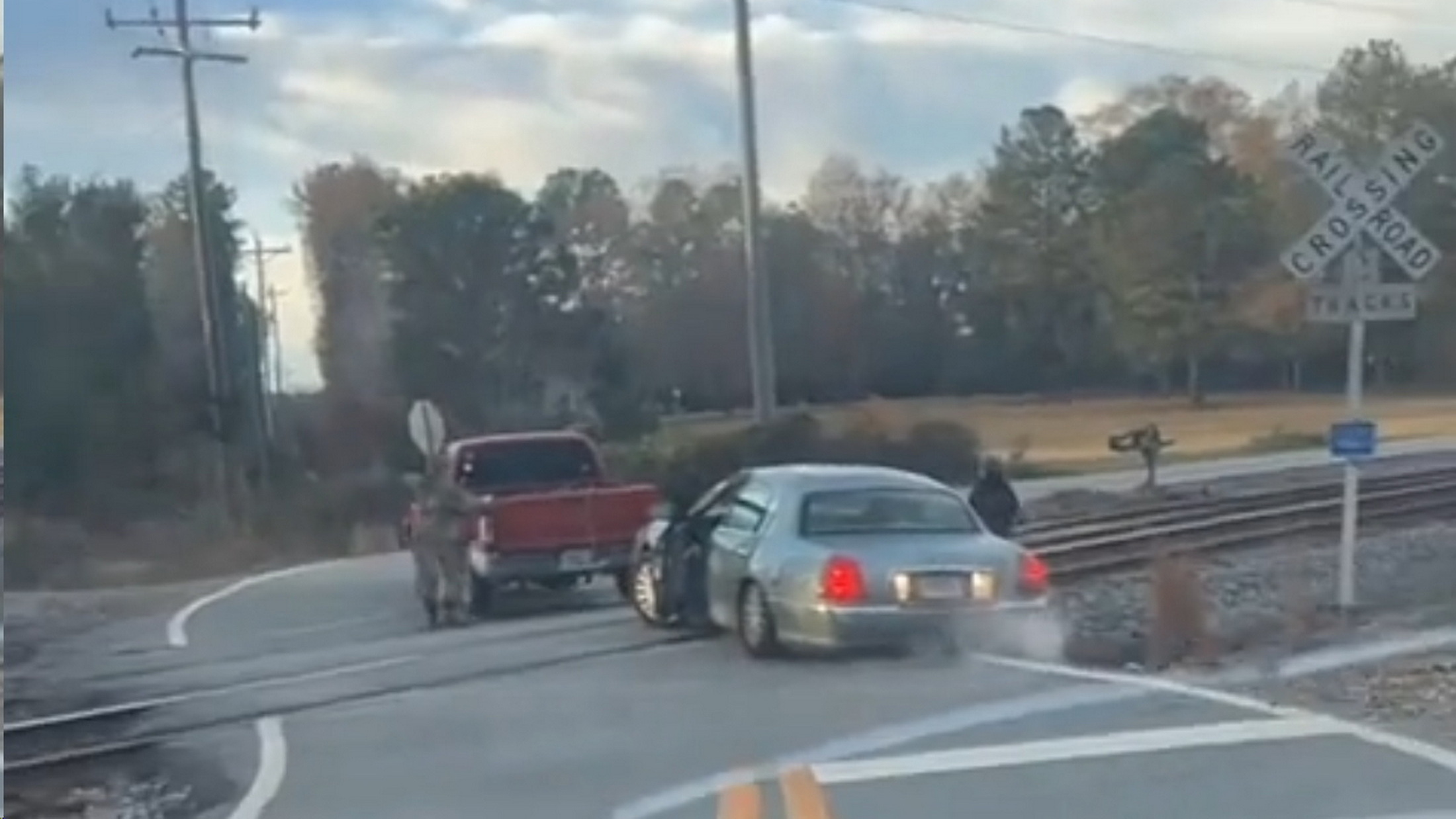 A Lincoln Town Car came to an unfortunate end in Georgia on Friday, after becoming stuck on the train tracks at a level crossing. Luckily, as video of the incident shows, the occupants of the vehicle were able to escape just before a train hit the car.