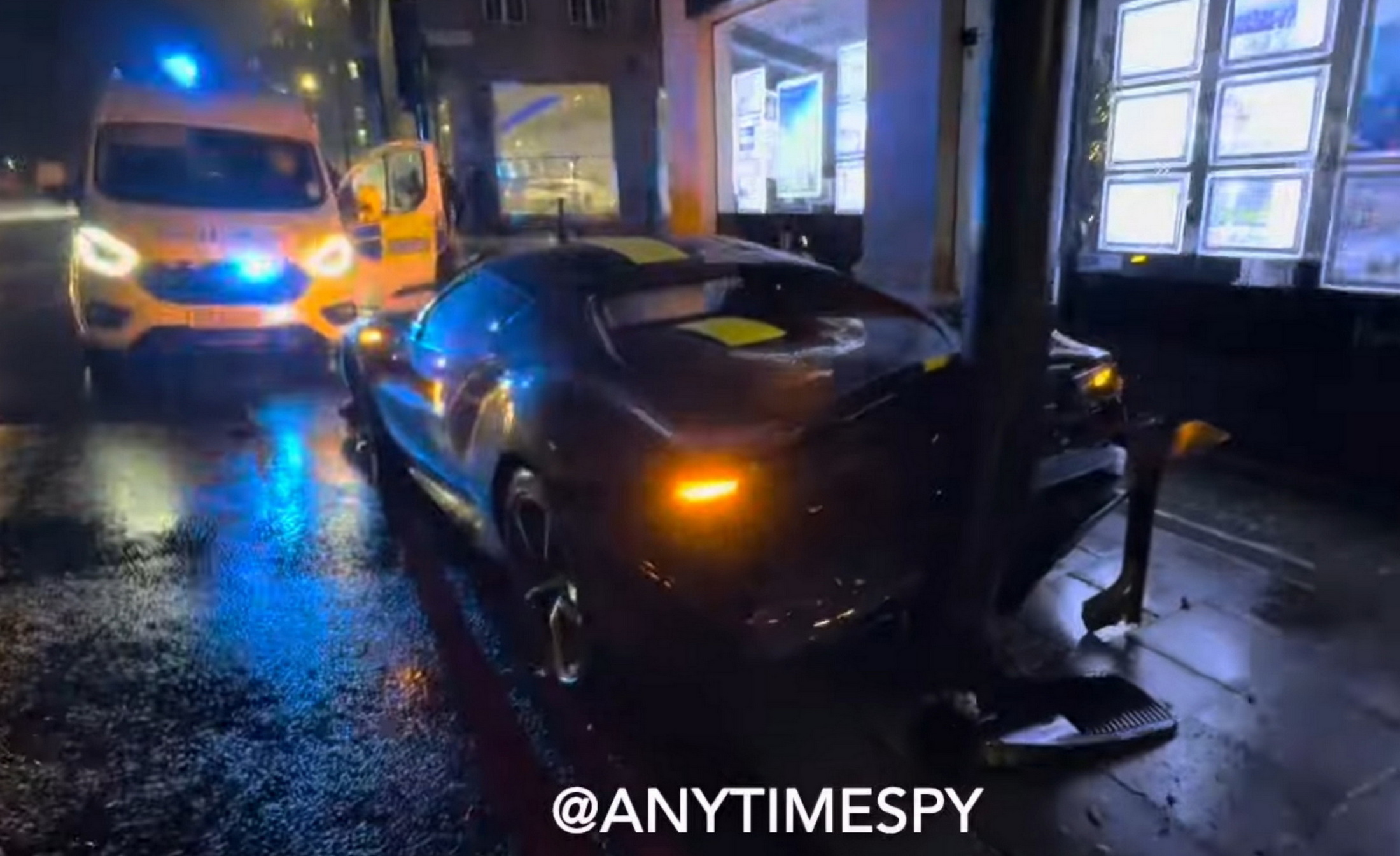 Fortunately, London police said that no one suffered any serious injuries in the crash, and reports indicate that the driver had exceeded the 20 mph (32 km/h) speed limit, but few other details exist. However, it appears that the Ferrari drove nose first into a bollard, then spun 180 degrees, and backed into a light pole.