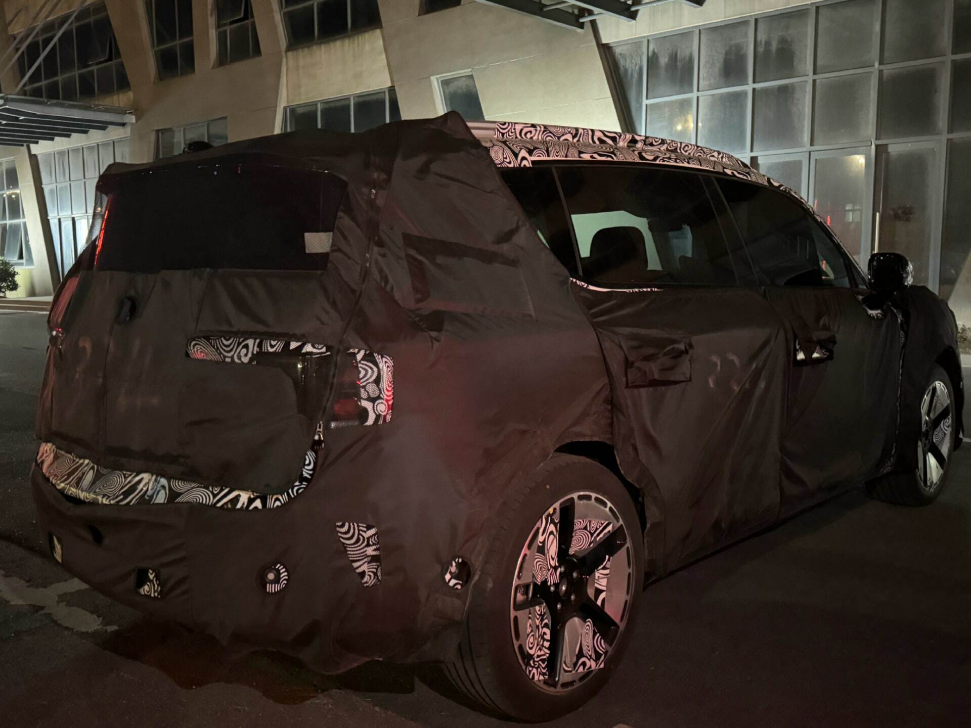 This prototype is wearing a set of striking silver wheels with aero caps that will probably be found on the production model and to allow a few extra miles out of its battery charge. When viewing the HY11 from the rear three-quarter angle, the similarity in its shape to the GLB immediately stands out thanks to the upright rear window, LED taillights, and short overhang.