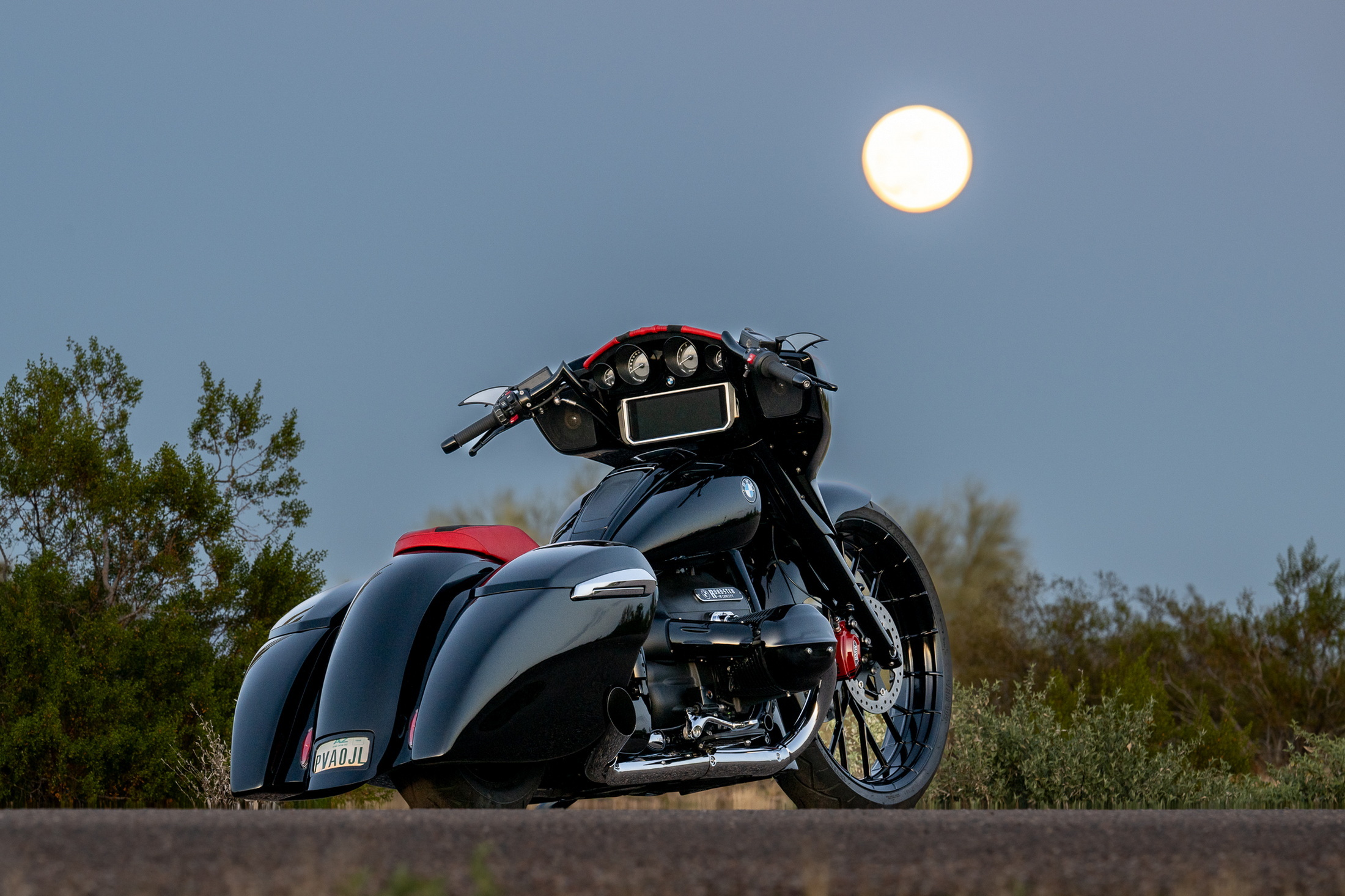 “The team wanted to retain the saddlebag lids, latches and speakers so a new set of ‘skins’ was created to give the bags a completely new and unique stretched profile while retaining the excellent engineering and functionality that BMW had created for them.” said Yaffe.