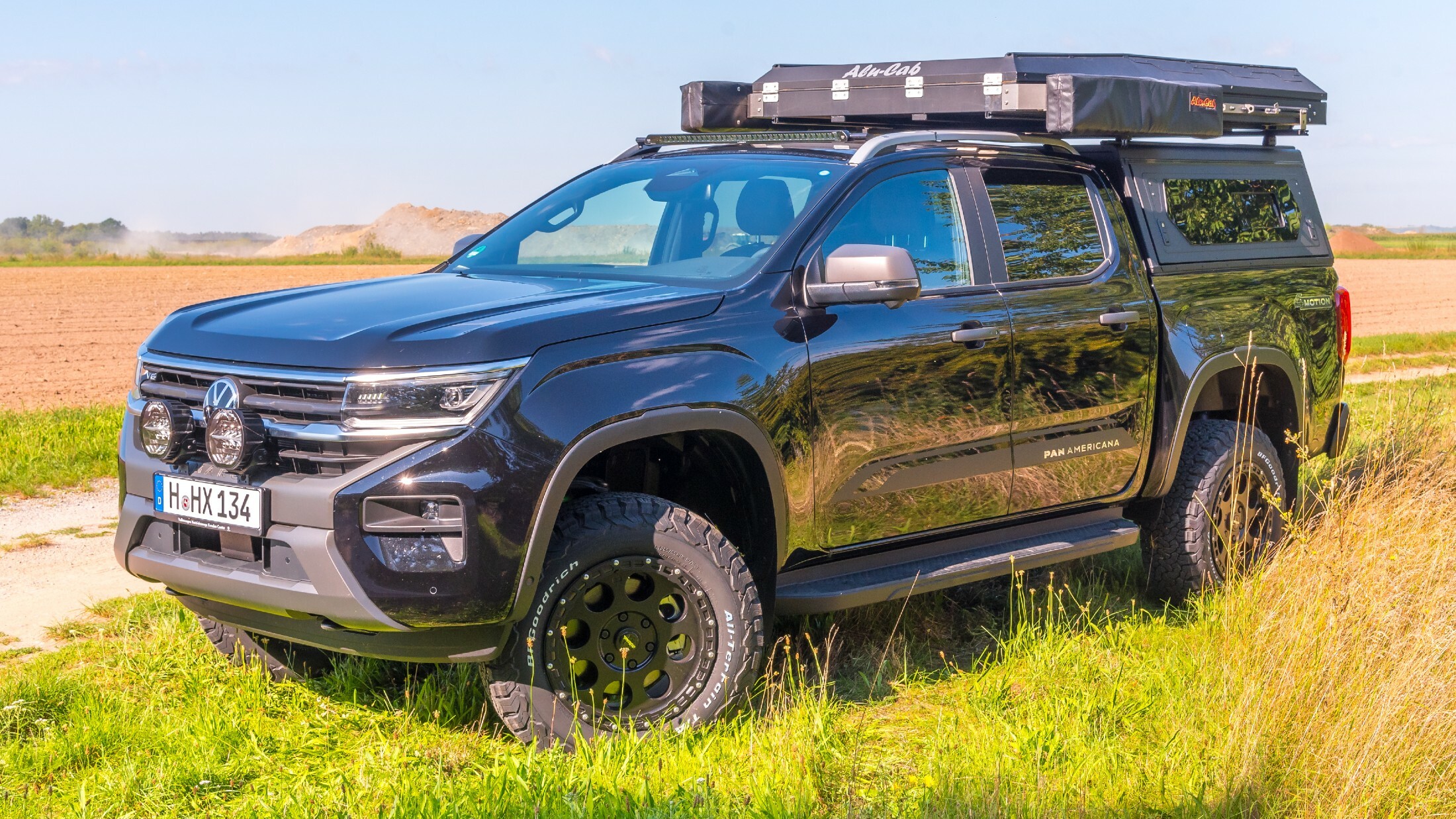 Other differences from the Amarok pickup include the slightly redesigned face with an unpainted bumper and sharper full-width LEDs. Finally, the all-terrain tires, increased ground clearance, front skid plate, side steps, snorkel, and roof rack add to the rugged stance of the vehicle.