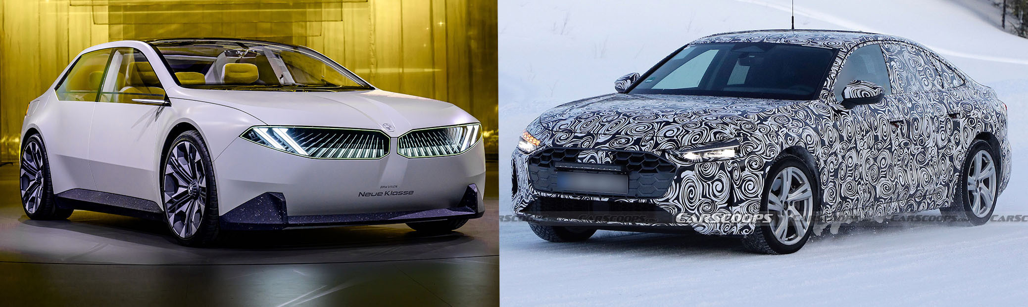 So it’s handsome but familiar. There’s no radical headlight treatment and no controversial grille update. Nothing to rock the boat. But over at Audi’s arch-rival BMW, designers are preparing a new 3-Series, and they’re not content with just adding a set of flush door handles and saying ‘job done.’ The next 3-Series, which will be available with a choice of combustion or electric power, will look very similar to last year’s Vision Neue Klasse concept, and to our eyes, that’s a far more interesting design than what we can see in these spy shots.