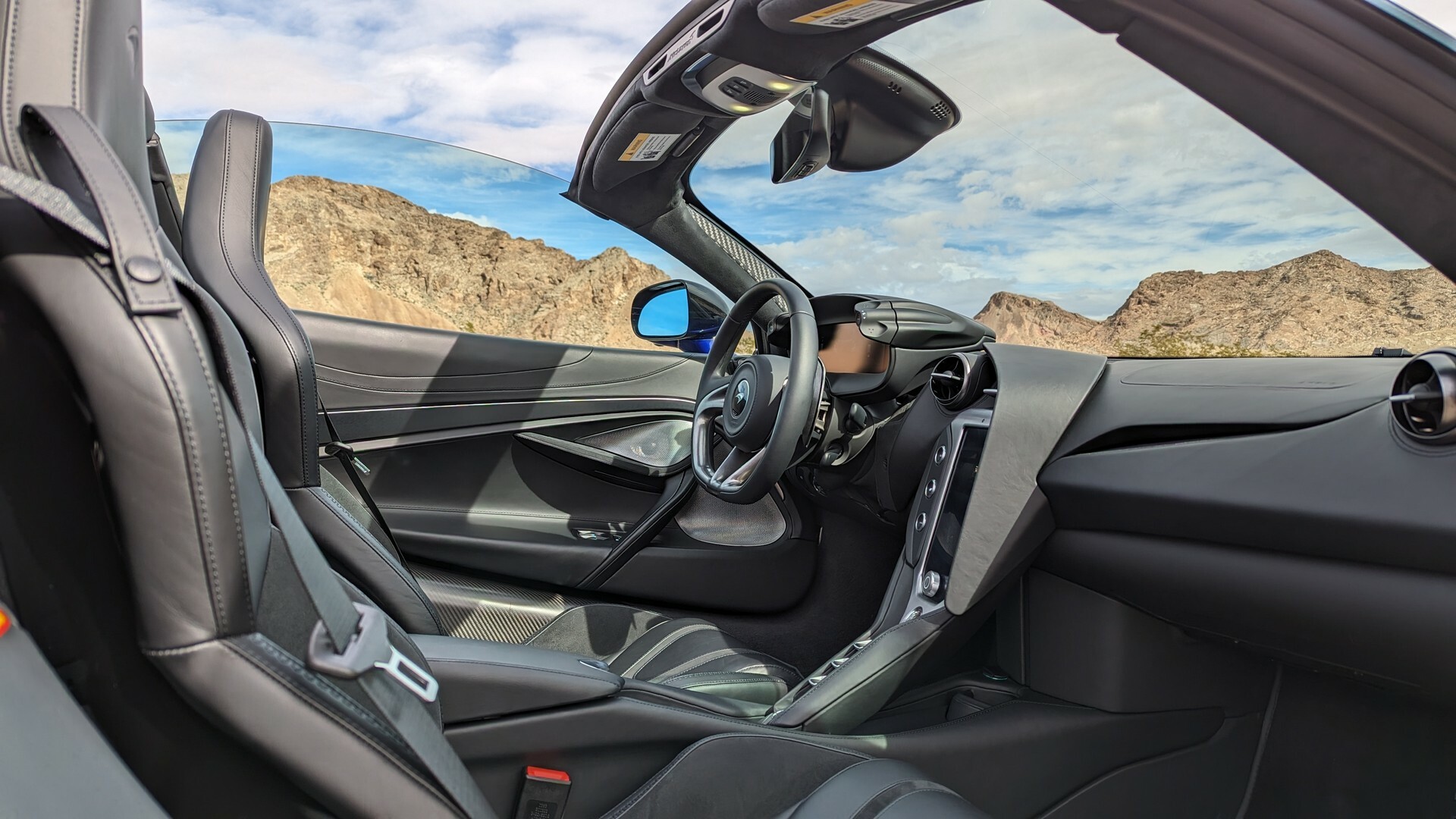 The 750S has new carbon fiber-shelled racing seats that weigh a combined 38.6 lbs (17.5 kg) less than the ones used in the 720S. Customers can also get Comfort Seats, which offer heating, power adjustment, and memory for $3,900. They’re pleasantly plush and were perfectly comfortable on our trek outside Las Vegas.