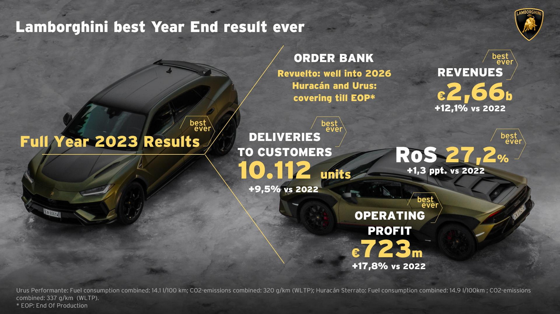 2023 was the best year on record for Lamborghini, which for the first time sold more than 10,000 vehicles. That helped it rake in €2.66 billion (US$2.89 billion at current exchange rates) in revenue, which is the most money it has ever made in a year, and 12.1 percent more than it managed in 2022.