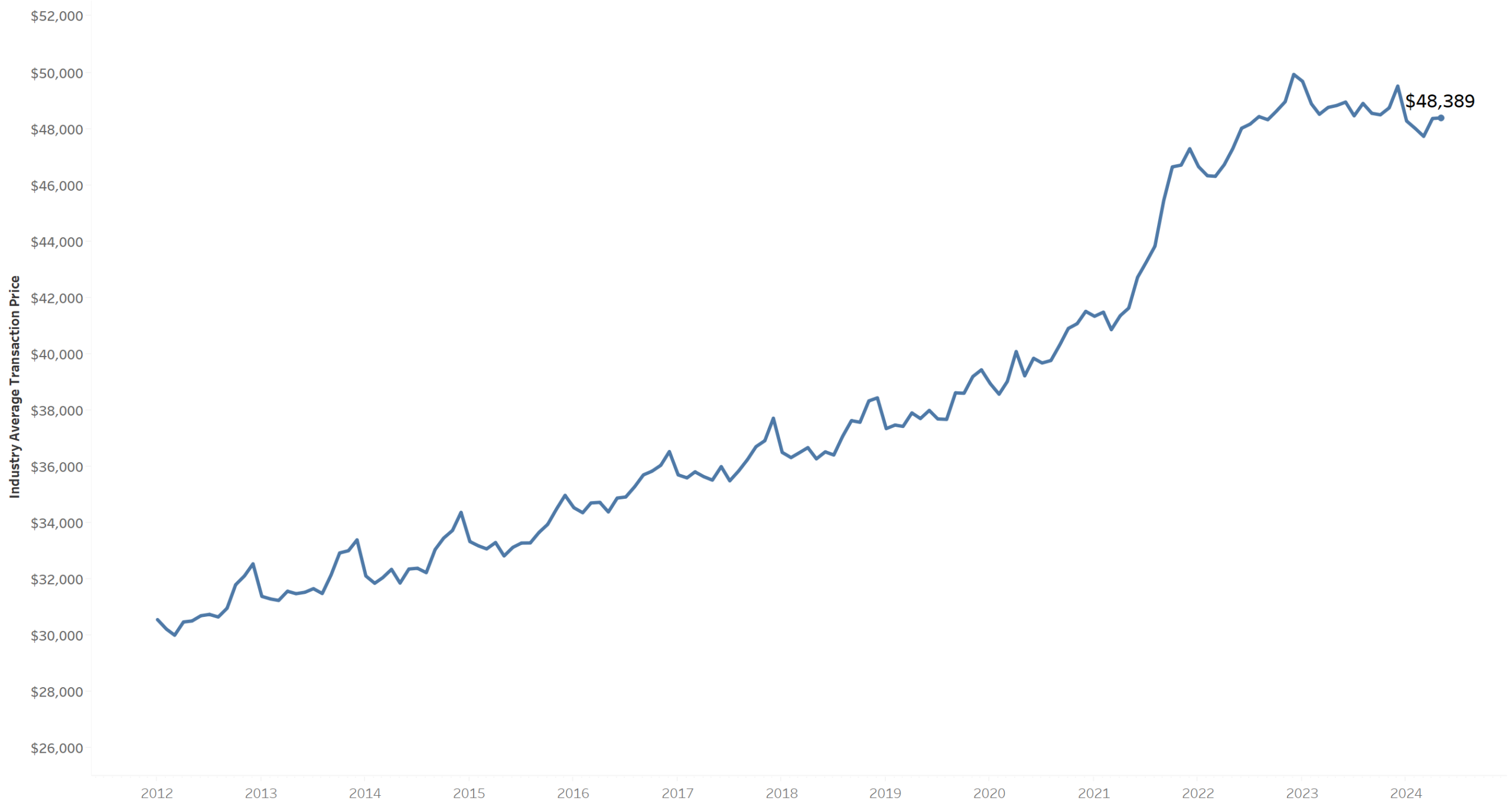 - The average transaction price (ATP) for a new vehicle in the U.S. was $48,389.