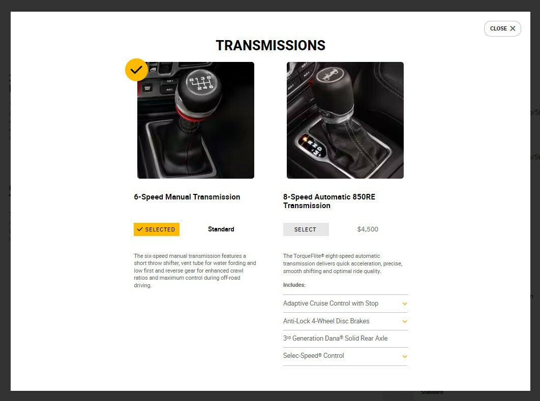 • Customers looking to get an automatic transmission in a Jeep Wrangler need to shell out $4,500.