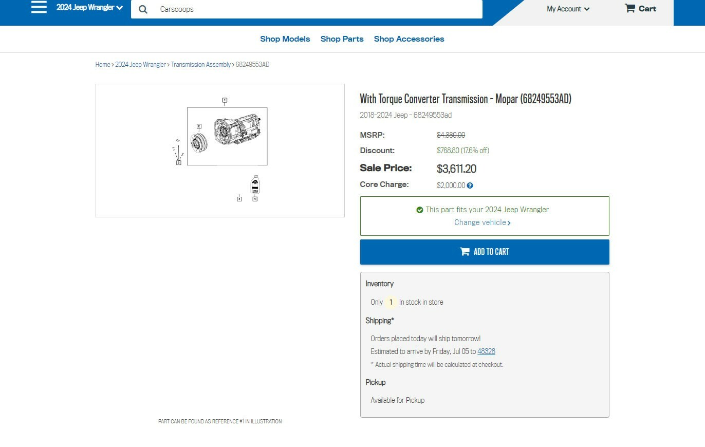 • That same gearbox can be bought from Mopar for just $3,611.20.