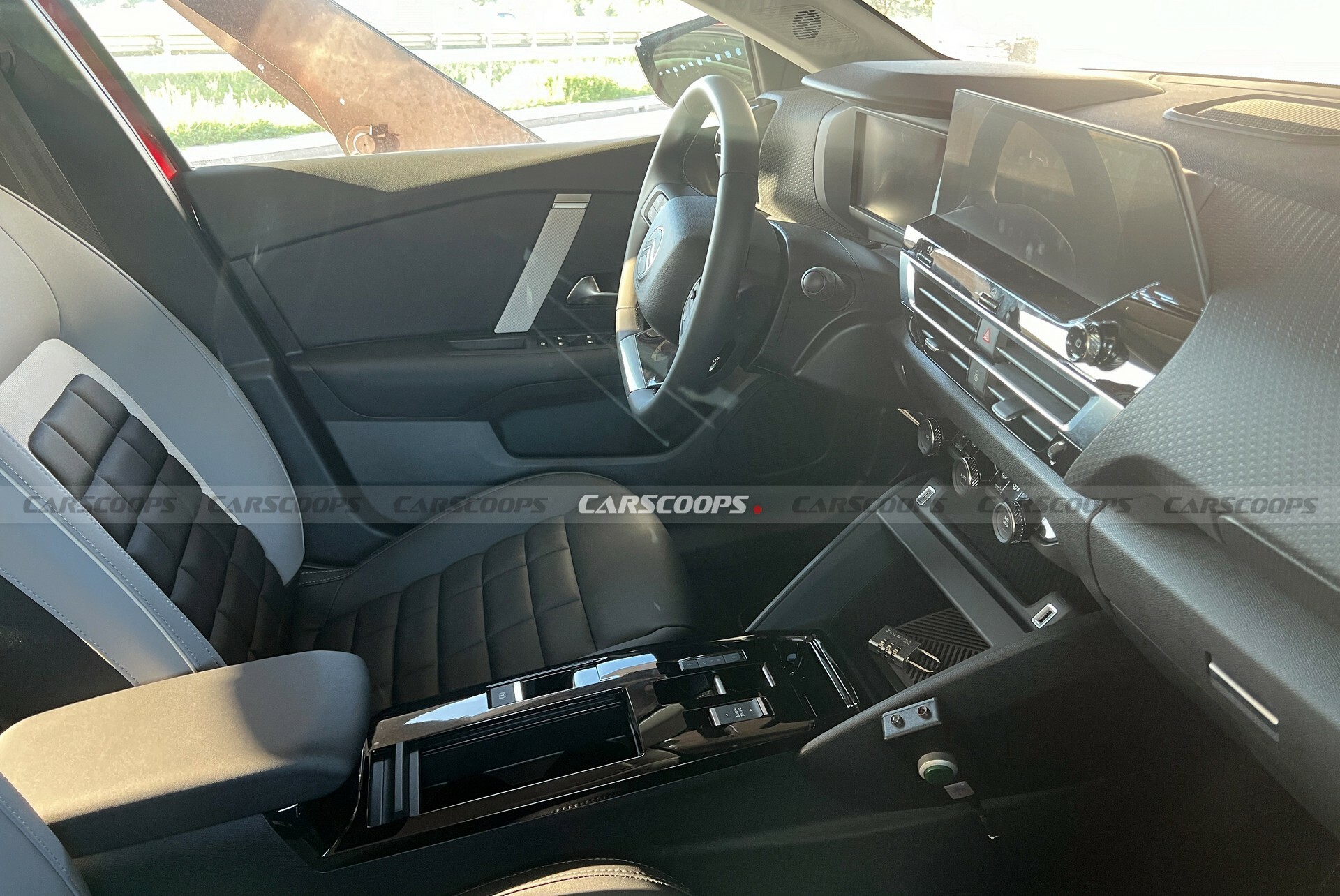 Starting inside, there isn’t much to report as the cabin appears to largely carryover. However, we can see a lightly revised steering wheel that sports Citroen’s updated logo. They’re joined by tri-color seats as well as familiar gloss black trim.