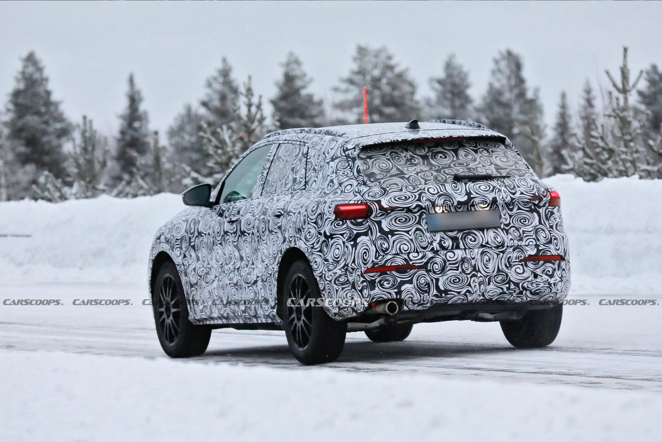 The camouflaged Q5 Sportback prototype shares its front-end design with earlier Q5 models, featuring aggressive LED headlights, a honeycomb grille, and sporty bumper intakes. However, it stands out with its sloping roofline and redesigned rear section. Those small wheels and basic taillights hint at a lower-spec model.