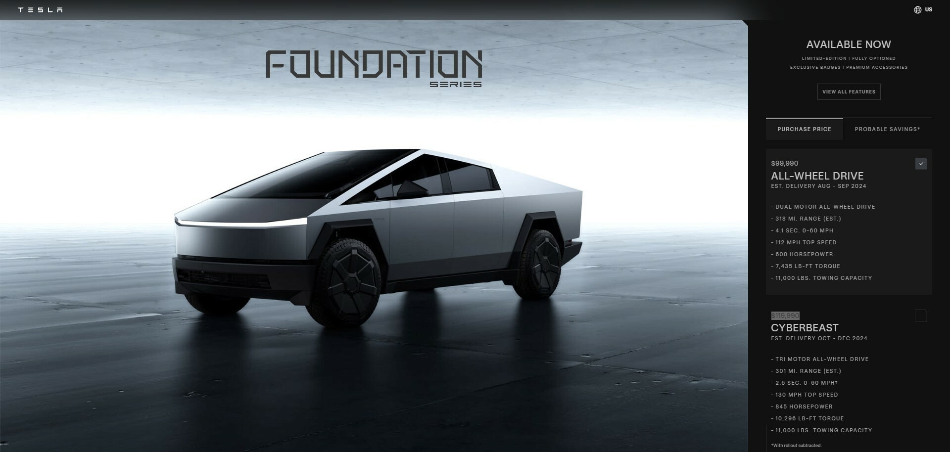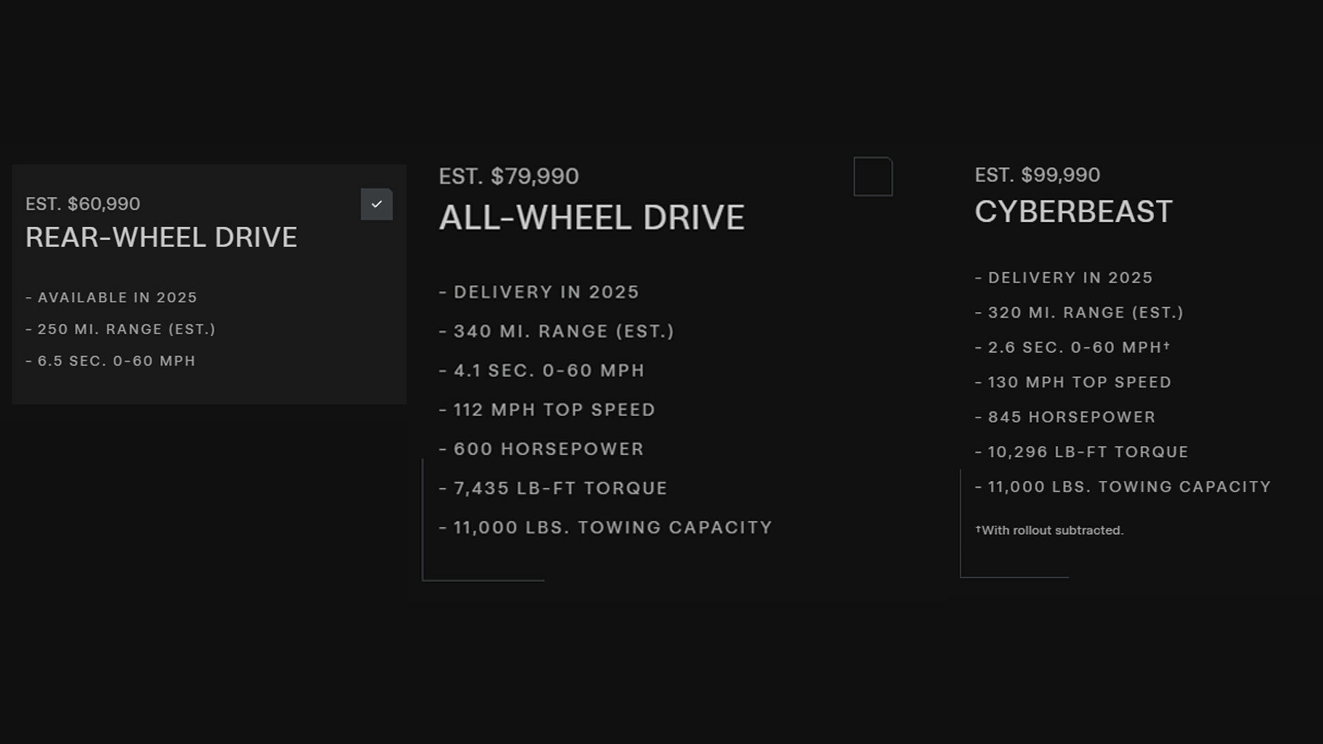 Pricing for the range-topping Cyberbeast has also climbed as the model now begins at $119,990. That’s up from $99,990 despite seeing its range drop from an estimated 320 miles (515 km) to 301 miles (484 km).