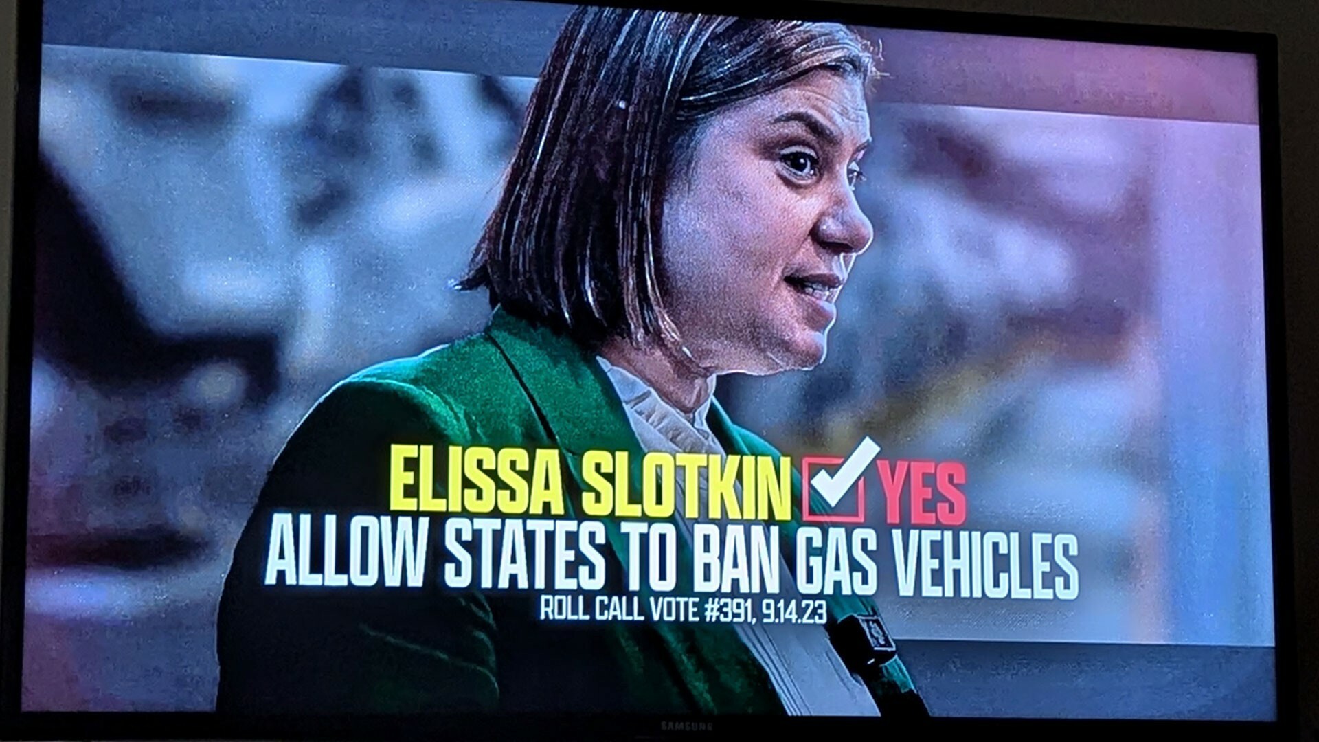 Representative Slotkin goes on to say, “No one should tell us what to buy and no one’s going to mandate anything.” She ends the 30 second commercial by stating, “What you drive is your call, no one else’s.”