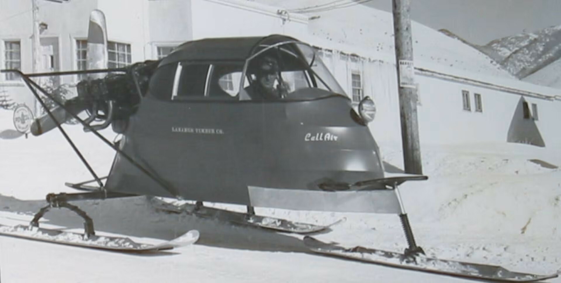 This helps to explain their unusual appearance as the ‘car’ has three skis and an aerodynamically optimized body. They’re joined by a rear-mounted 3.1-liter four-cylinder engine that powers a wooden propeller.