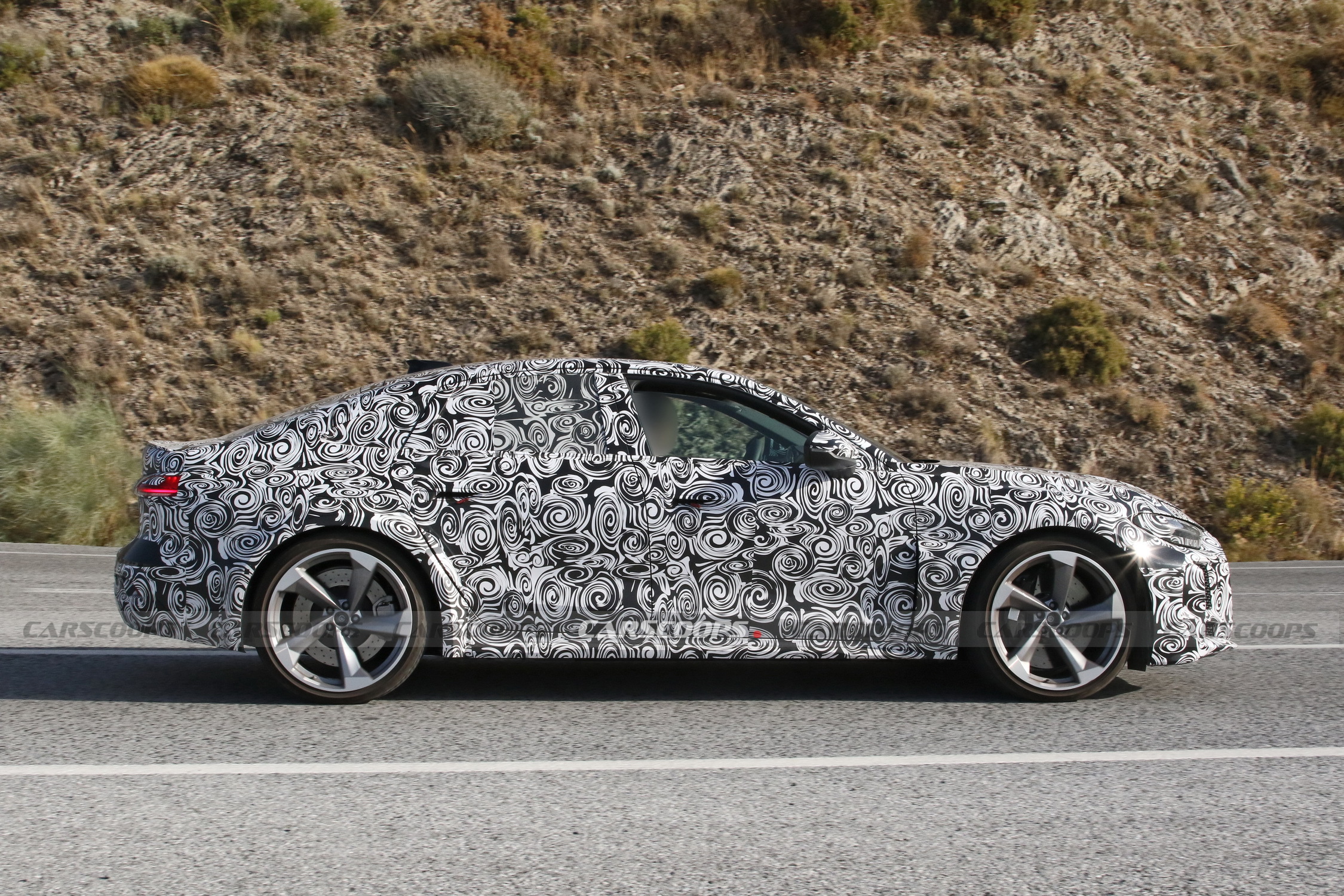 Update 11/10: The Audi RS5 has been caught flexing its muscles yet again, this time in sedan form, strutting through another round of testing. Predictably, it’s still cloaked in the ubiquitous swirly camouflage that’s practically a uniform for European prototypes, doing its best to keep prying eyes from soaking in too much detail. Along with this fresh batch of spy shots, we’ve extensively updated our article below with all the latest information we have on the high-performance model.